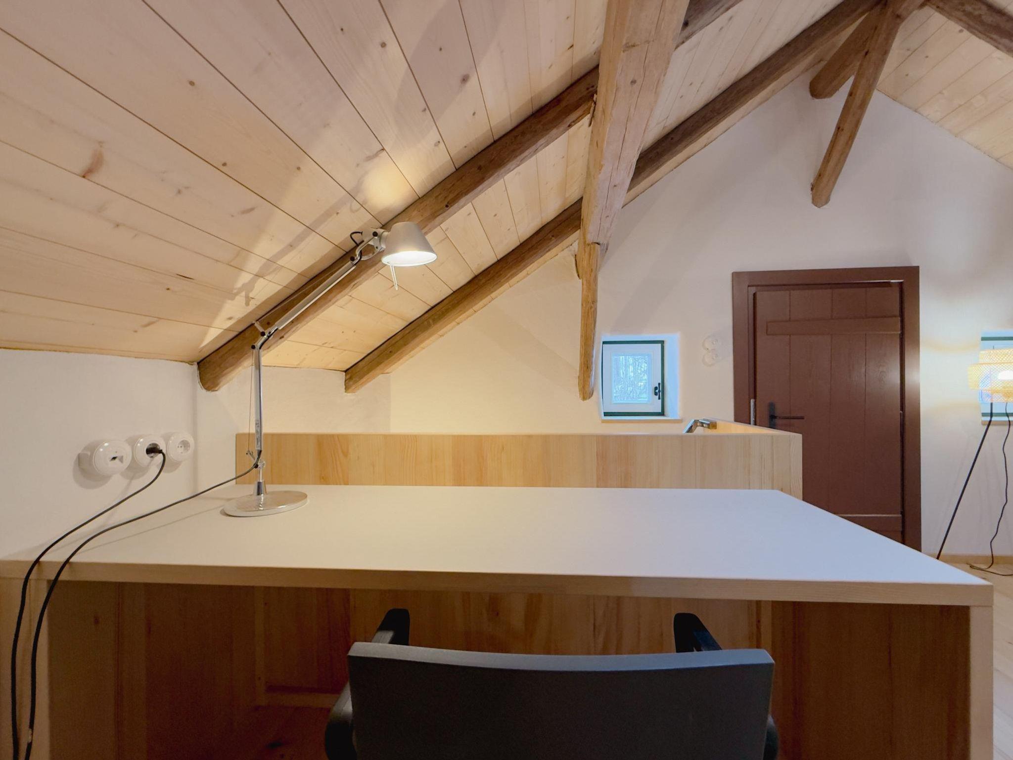 • Eine gemütliche Couch und einen Schreibtisch für ruhige Gedanken.