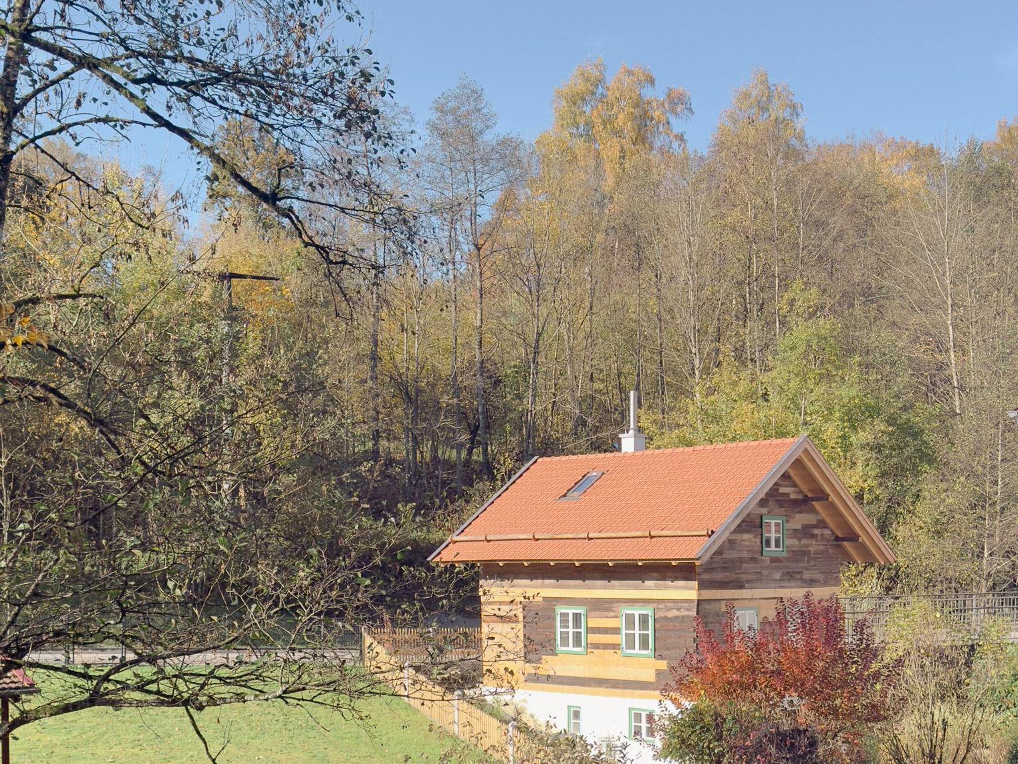 • Natürliche Materialien: Wände aus traditionellem Blockbau mit Lehmputz, kombiniert mit einer modernen Wandheizung, sorgen für wohlige Wärme.