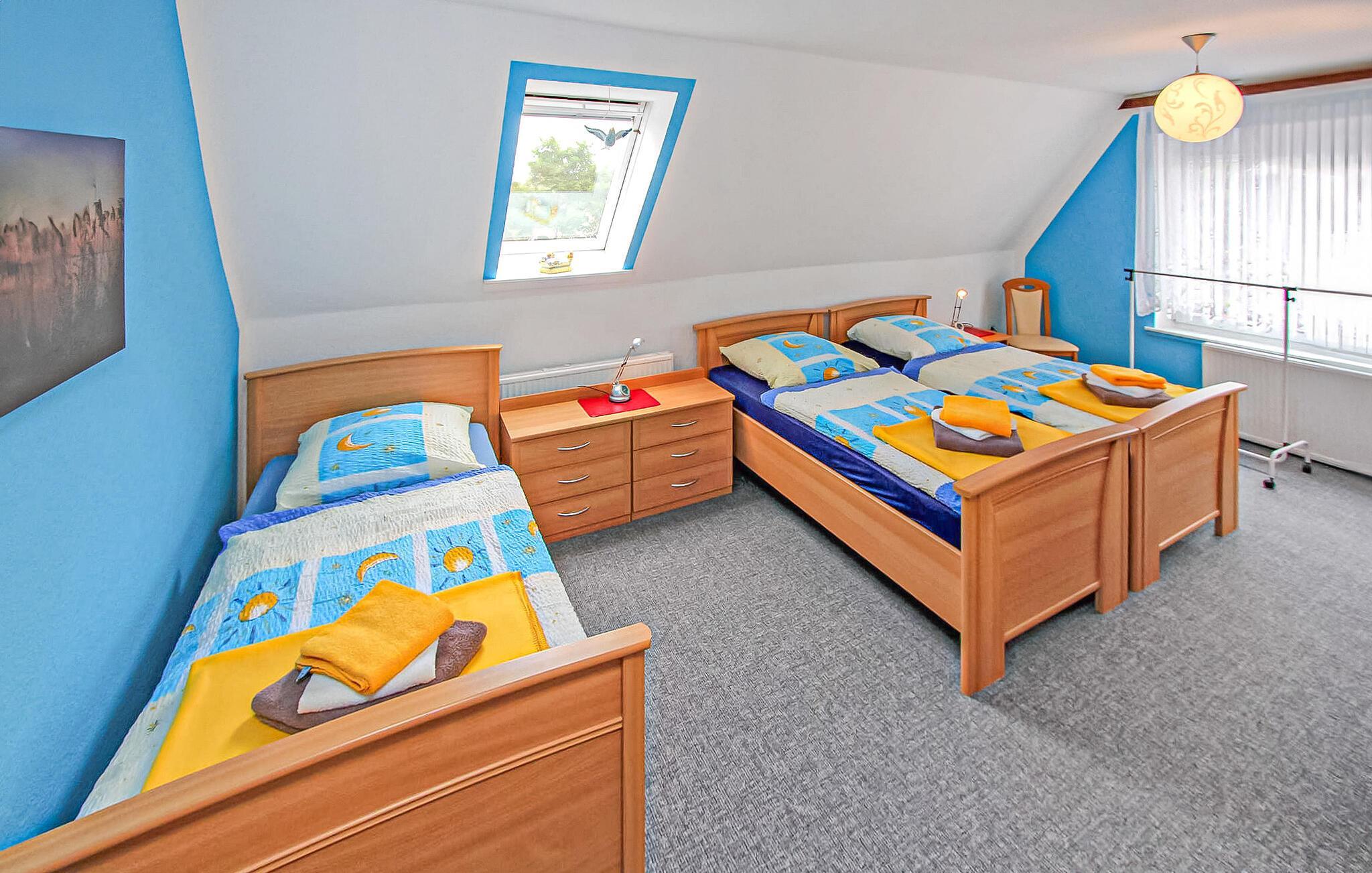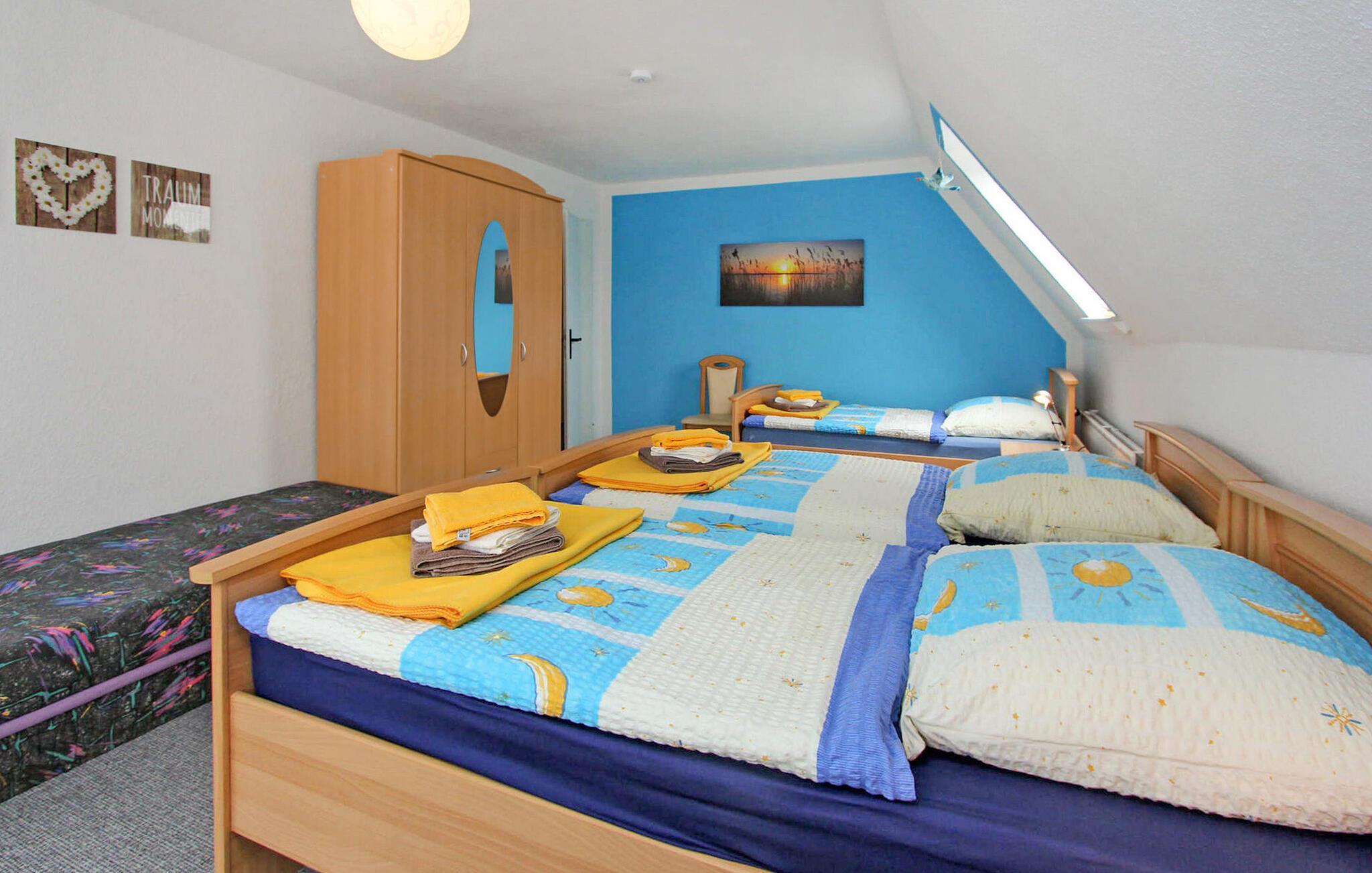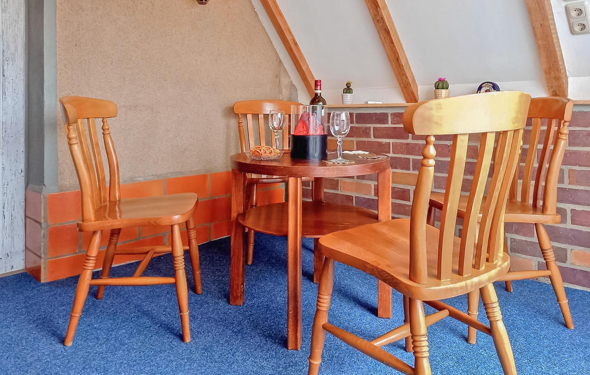 Den 45 kvm store toværelses ferielejlighed til maks. 3 personer er beliggende separat på øverste etage i en beboelsesejendom på ejerens 1365 kvm store beboelsesejendom indenfor et roligt boligområde i lokalområdet. Byens centrum, butikker og restauranter ligger inden for cirka 500 m. Søen Neuklosteraner med en smuk strand ligger cirka 1,5 km væk. Lejligheden blev moderniseret i 2019 og er udstyret med stue (polstrede møbler, fladskærms-tv, radio/cd), soveværelse (3 x enkeltsenge), køkken (spiseplads, elektrisk kogeplade, køleskab med fryser, mikroovn). , diverse køkkenmaskiner), et badeværelse med kar/toilet. samt et separat rum til fritidsaktiviteter. Der er også en parkeringsplads foran huset og en høj stol til små børn. Cykler (af forskellig størrelse) kan lejes på stedet og medbragte cykler kan opbevares sikkert. Den samlede pris inkluderer slutrengøring, sengelinned, håndklæder samt vand- og energiforbrug. Ferielejligheden udlejes ikke til bygningsarbejdere/virksomheder! Neukloster er en lille by i det nordvestlige Mecklenburg på kanten af Sternberg-sølandskabet. Neuklosteraner See, en smuk bade- og fiskesø med stor badestrand, bådudlejning og snackbar, ligger i lokalområdet. Takket være de gode transportforbindelser (A 20 og A 14), kan Schwerin (37 km), Rostock (45 km) og Østersøen (hansestaden Wismar 20 km) nås på omkring 30 minutter i bil. Ud over de talrige gamle bygninger kan nævnes klosterkirken fra 1219 med talrige værdifulde udstillinger.