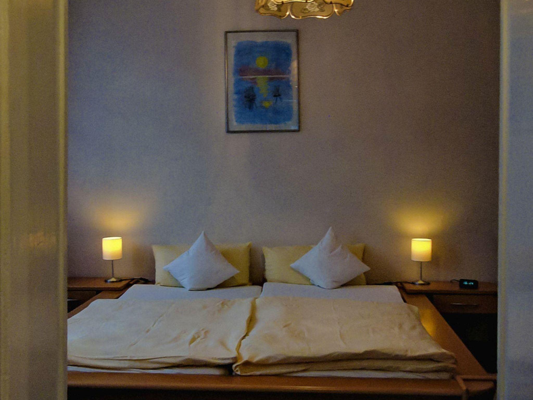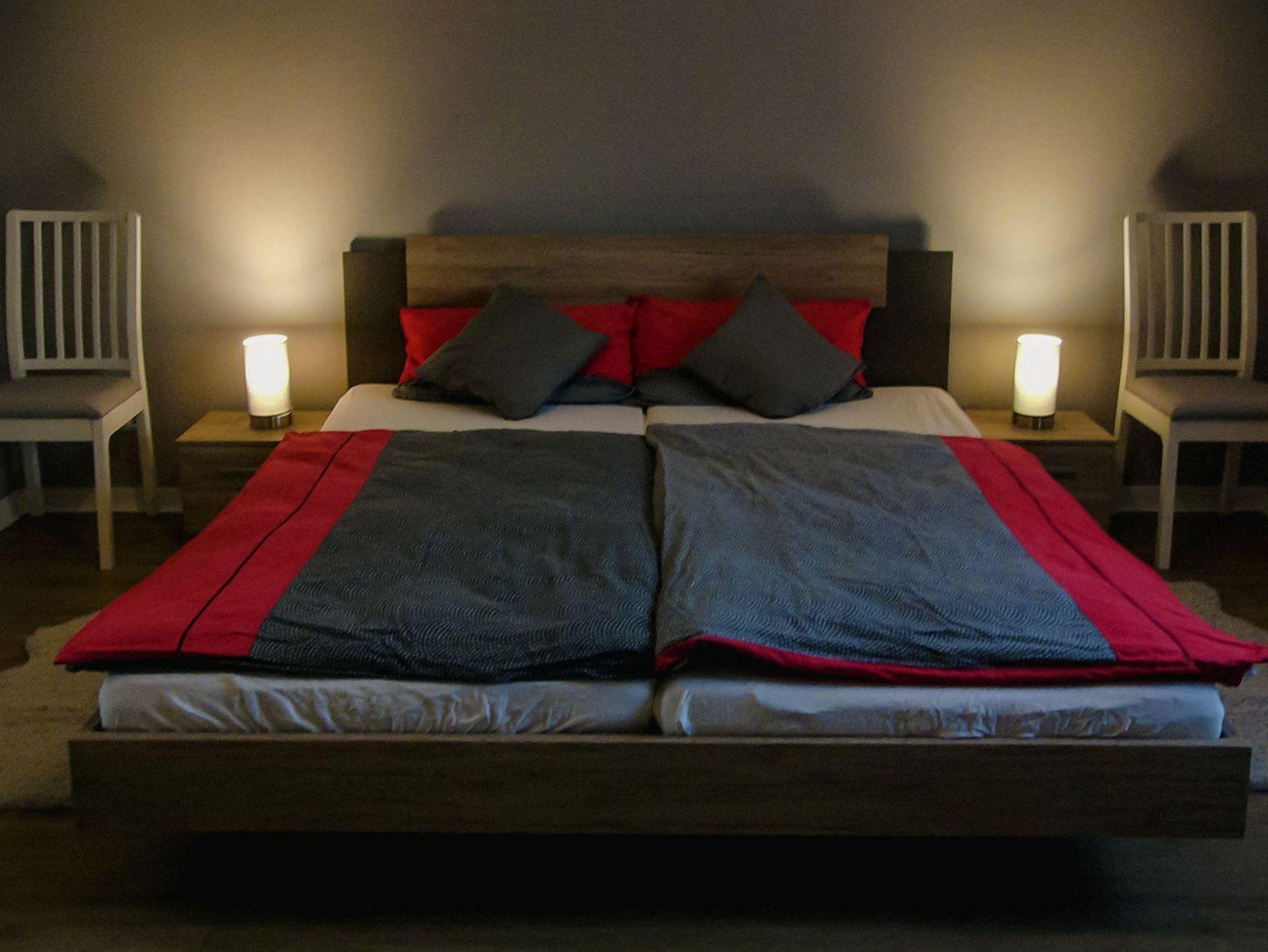 Die Wohnung umfasst zwei Schlafzimmer mit Doppelbetten (1,80 × 2,00 m), ein gemütliches Wohnzimmer mit TV, WLAN, Gesellschaftsspielen und Miniweinbar sowie eine voll ausgestattete Küche mit Mikrowelle, Herd, Backofen, Kühlschrank, Geschirrspüler und Eckbank. Ein Kinderreisebett und -hochstuhl sind auf Wunsch verfügbar.