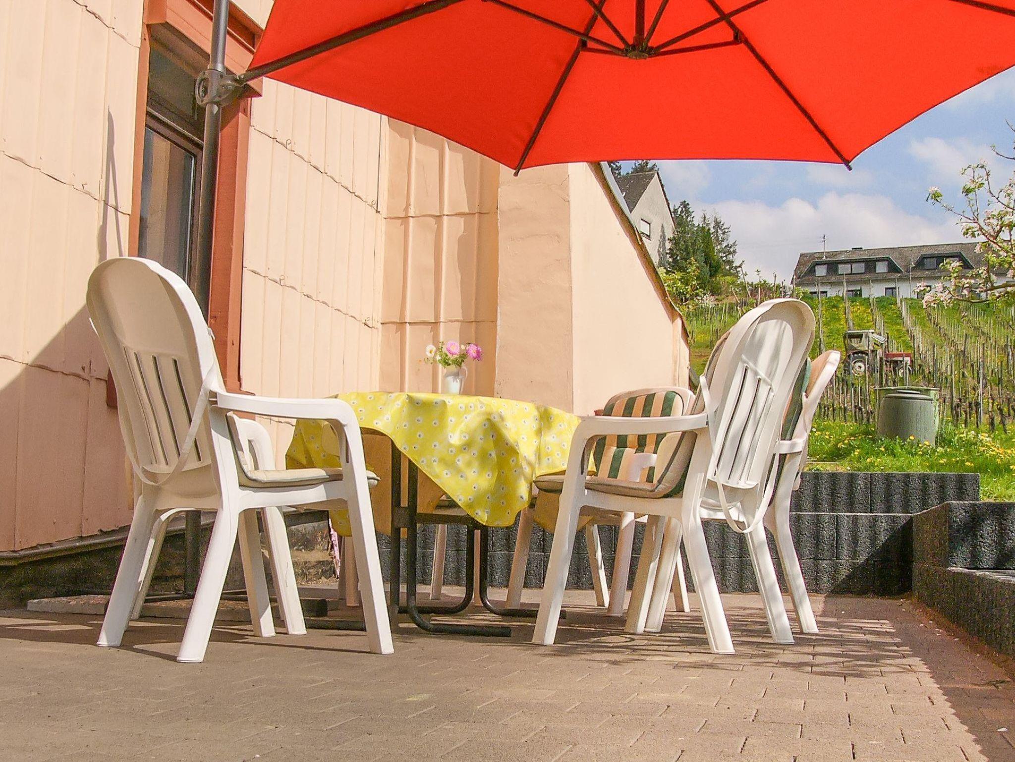 Auf der nur Ihnen zur verfügung stehenden Terrasse mit großem Sonnenschirm, Tisch und sechs Gartenstühlen können Sie wunderbar entspannen.