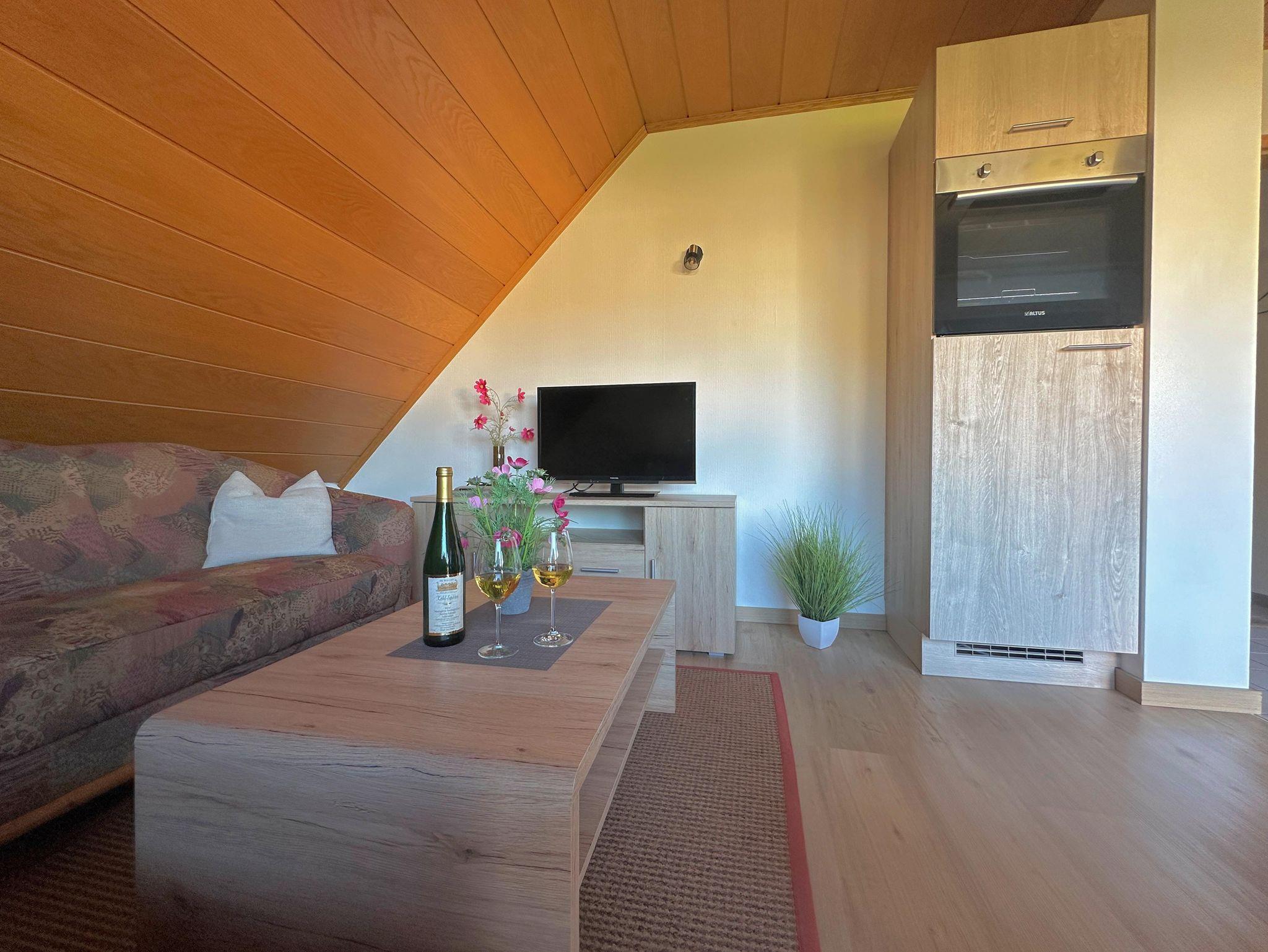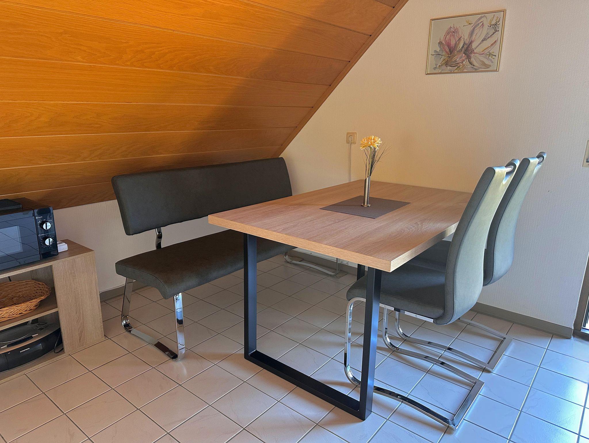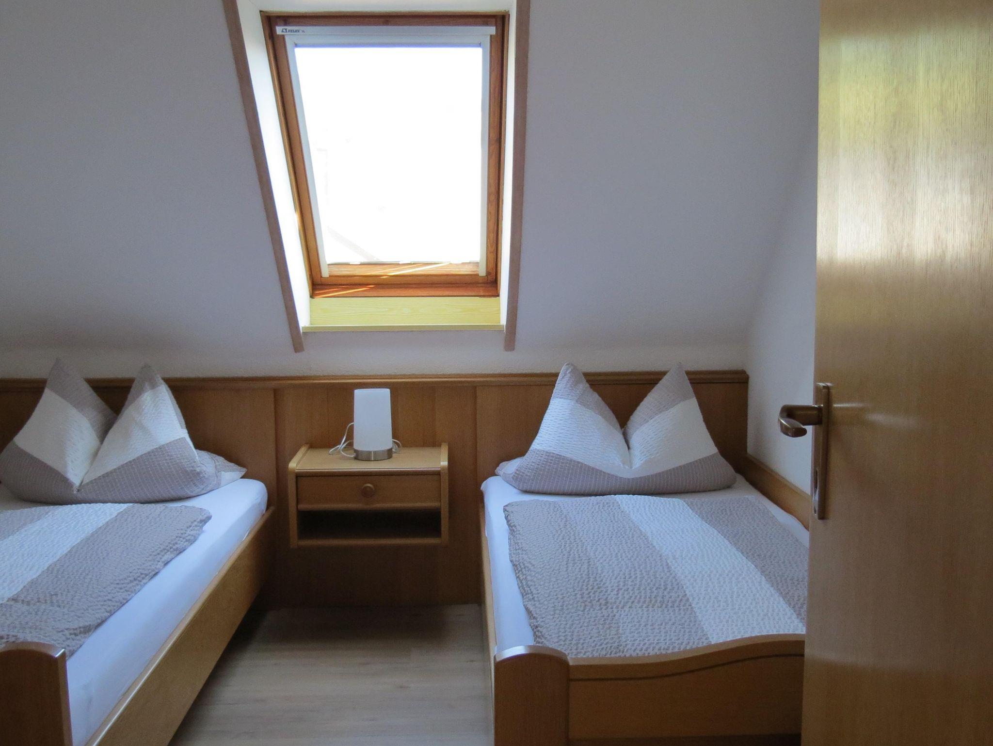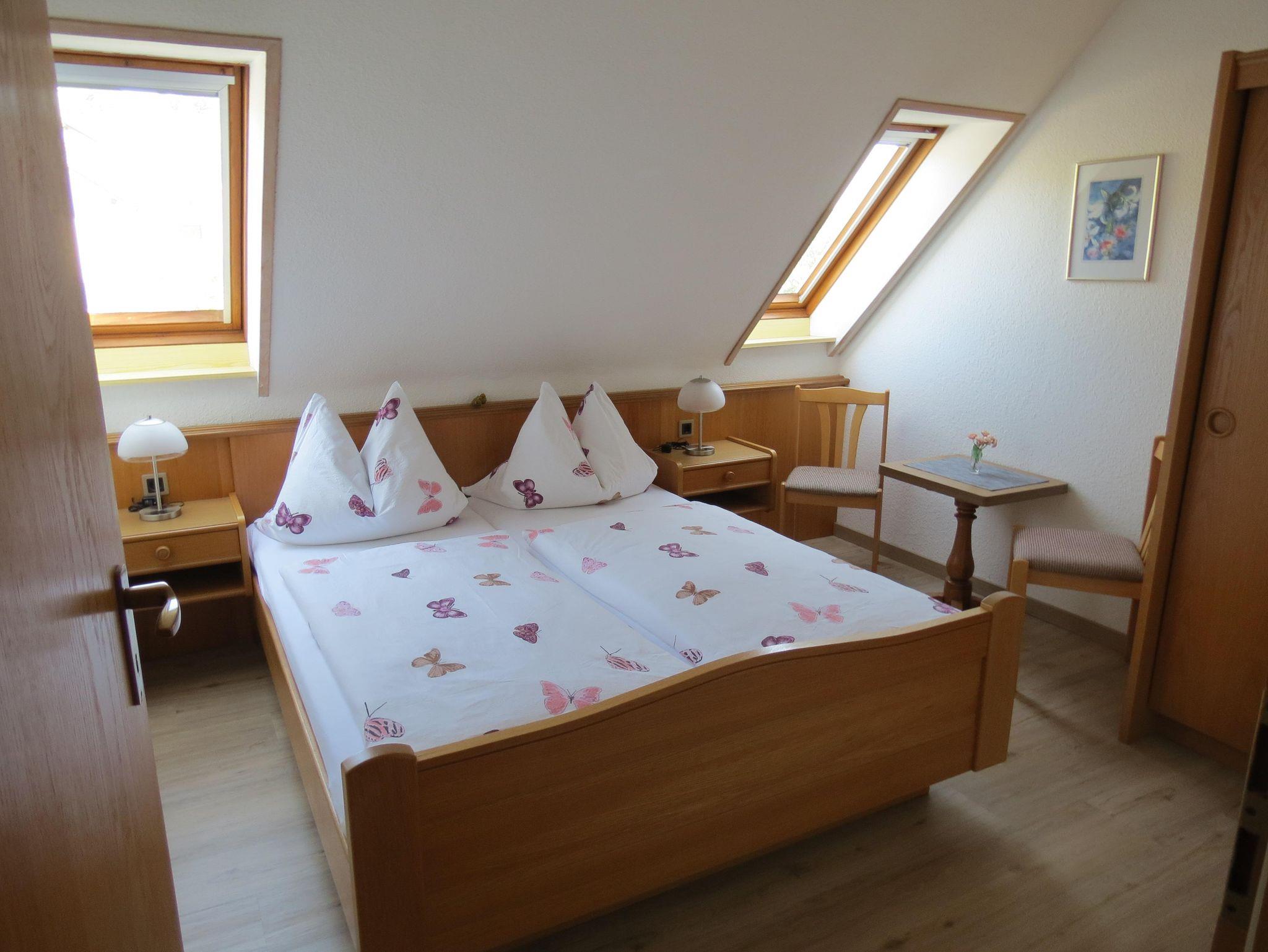 Die Ferienwohnung Nr. 11 Weitblick befindet sich im Dachgeschoss (57 qm) und bietet Platz für 2 bis 4 Personen mit einem Doppelzimmer
