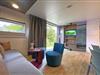Stueetage: (Indgang , åbent køkken(elkedel, brødrister, komfur(Komfur med fire kogeplader, induktion), emhætte, kaffemaskine(kaffetragt), ovn(mini), mikrobølgeovn, opvaskemaskine , køle-fryseskab), stue / spisestue(Fjernsyn(fladskærm, parabol, Smart-TV), spisebord(6 personer)), soveværelse(2x enkeltseng(80 x 190 cm)), soveværelse(køjeseng(80 x 190 cm)), Soveværelse med badeværelse(dobbeltseng(160 x 200 cm), bruser, håndvask, toilet), badeværelse(bruser, håndvask, toilet)) tørretumbler(deles med andre gæster, betalt), vaskemaskine(deles med andre gæster, betalt), varme(elektrisk), terrasse(privat), have(deles med andre gæster, 10000 m2), havemøbler, solstole, grill, parkering, barnestol, insektnet, Solcreme, Volleyballbane, Ladestation til el-biler