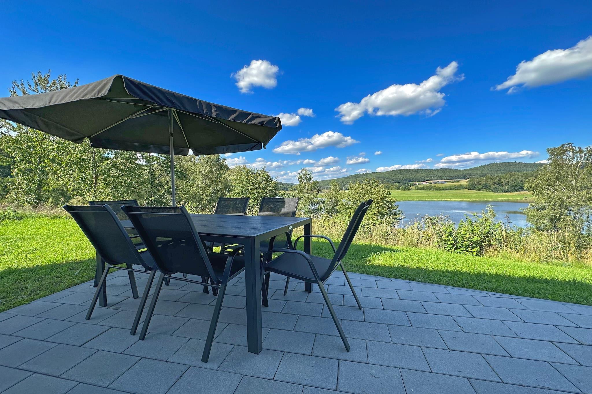 Velkommen til den rolige ferieby Seeblick, beliggende ved bredden af søen Eixendorf i Oberpfalz-skoven. Denne hyggelige lille hytte tilbyder plads til familier, par eller venner, der søger fred og natur. Indenfor finder du et fuldt udstyret åbent køkken, stue-spisestue, tre soveværelser og to badeværelser, alle designet til komfort og privatliv. Træd ind på din private terrasse med pejs, havemøbler, parasol og liggestole, perfekt til afslapning ved søen. Faciliteterne inkluderer WiFi, tv, opvaskemaskine og privat parkering. Den omkringliggende region er et paradis for vandreture, cykling, fiskeri, sejlads og golf, med naturskønne stier, der snor sig gennem hede og bjerge. Uanset om du leder efter eventyr eller ro, tilbyder Oberpfälzer Seenland en rig blanding af fritid, kultur og naturlig skønhed.