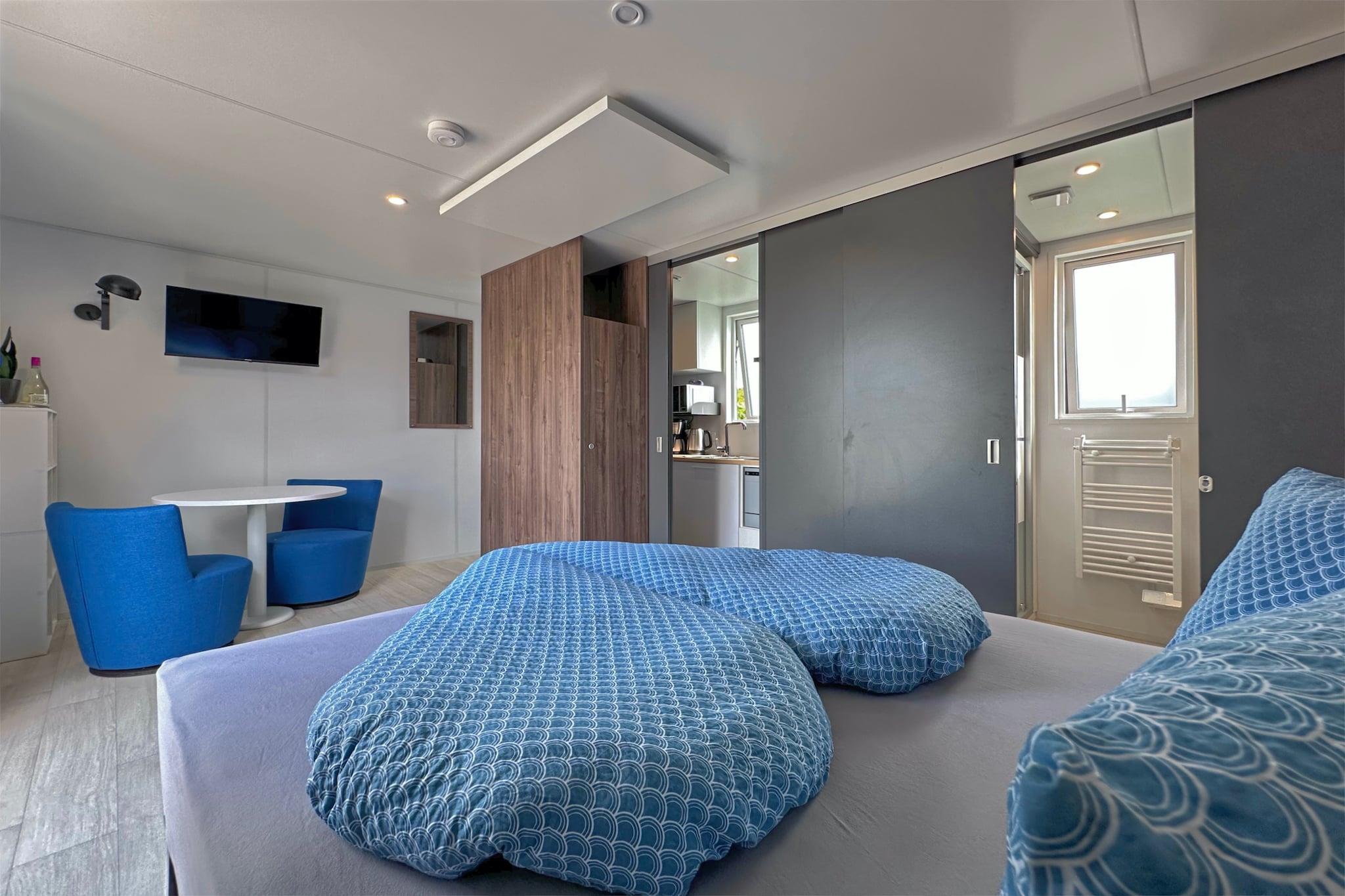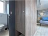 Stueetage: (Indgang , Køkken(elkedel, brødrister, komfur(Komfur med fire kogeplader, induktion), emhætte, kaffemaskine(kaffetragt), mikrobølgeovn, opvaskemaskine , køle-fryseskab), Stue/soveværelse(dobbeltseng(160 x 200 cm), Fjernsyn(fladskærm, parabol, Smart-TV), spisebord(2 personer)), badeværelse(bruser, håndvask), toilet(toilet)) tørretumbler(deles med andre gæster, betalt), vaskemaskine(deles med andre gæster, betalt), varme(elektrisk), terrasse(privat), have(deles med andre gæster, 10000 m2), havemøbler, solstole, grill, parkering, barnestol, insektnet, Solcreme, Volleyballbane, Ladestation til el-biler