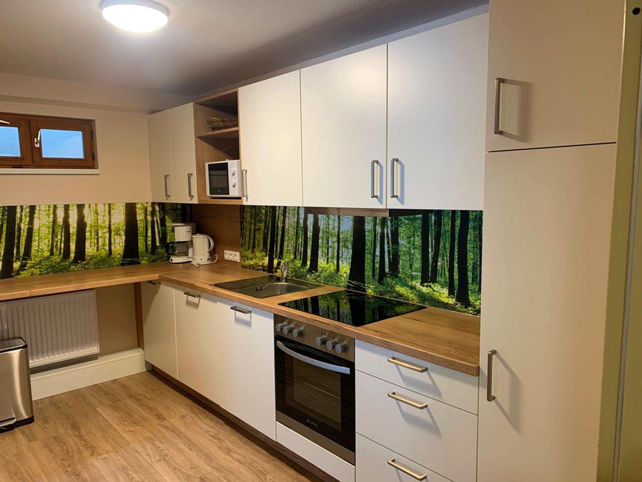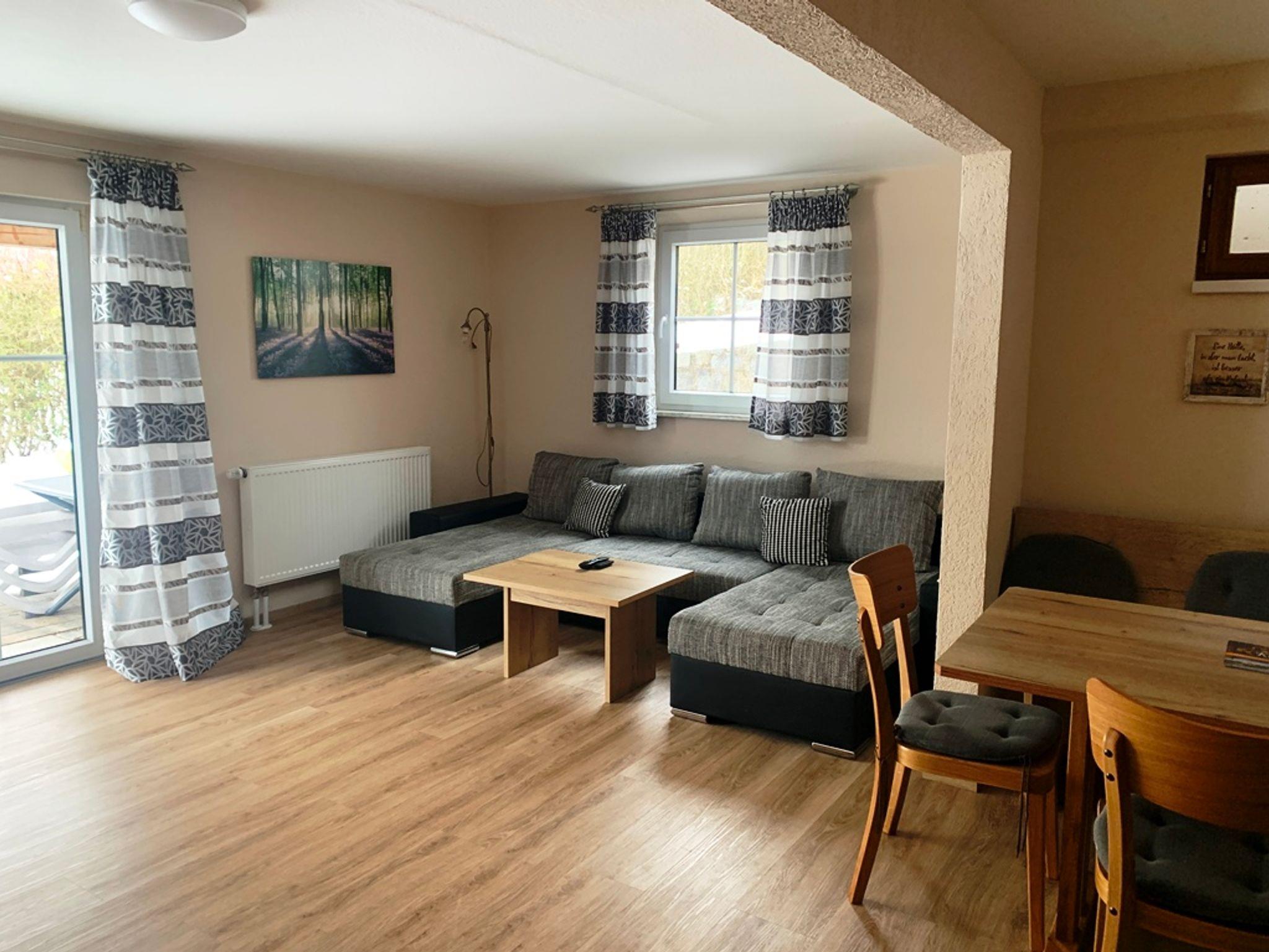 Ferienwohnung (90 qm) für bis zu 6 Personen. Ebenerdig gelegen mit separatem Eingang und Terrasse. Großer Wohnraum mit Couch und TV, Essecke und Durchgang zur gut ausgestatteten Küche. Drei getrennte Schlafräume mit je zwei Betten. Im Badezimmer gibt es Dusche, WC und ein Waschbecken, außerdem gibt es noch ein separates WC und eine Waschmaschine. Bettwäsche einmalig und Endreinigung ist im Preis bereits enthalten so wie noch zahlreiche weitere Extras bei uns auf dem Hof. Falls benötigt, stellen wir gerne kostenlos ein Baby-Gitterbettchen bereit.