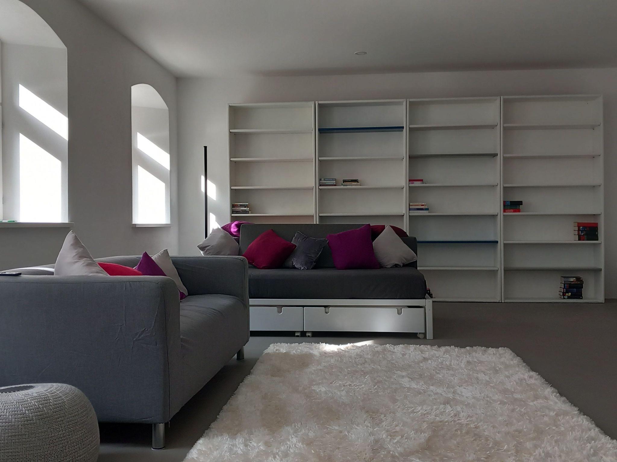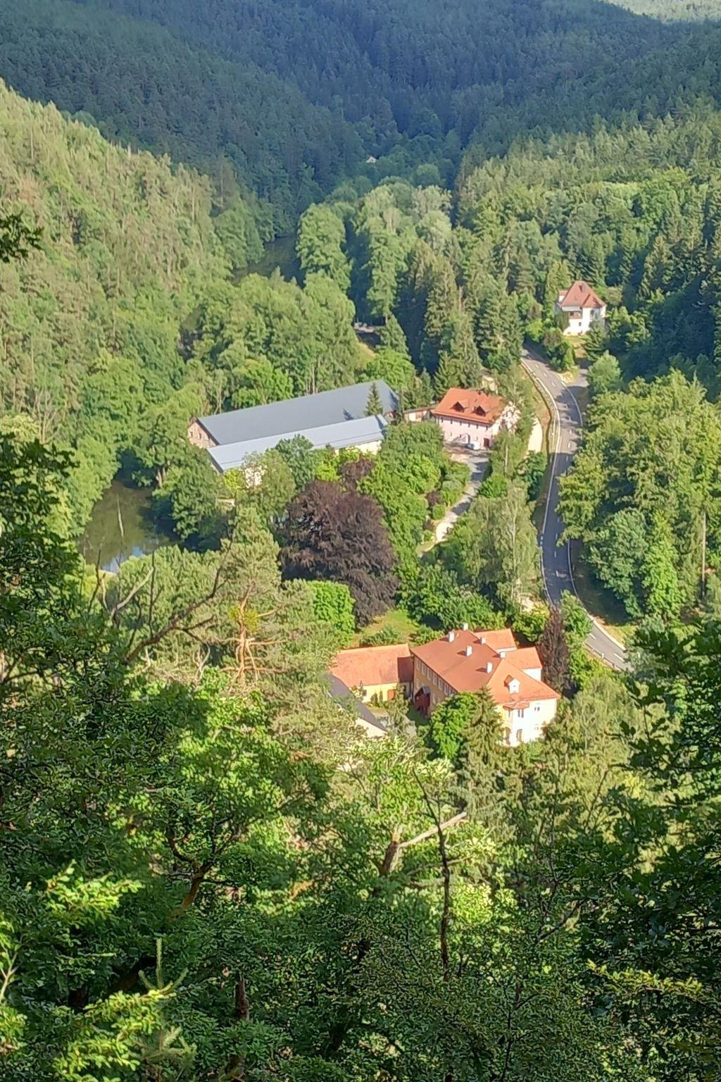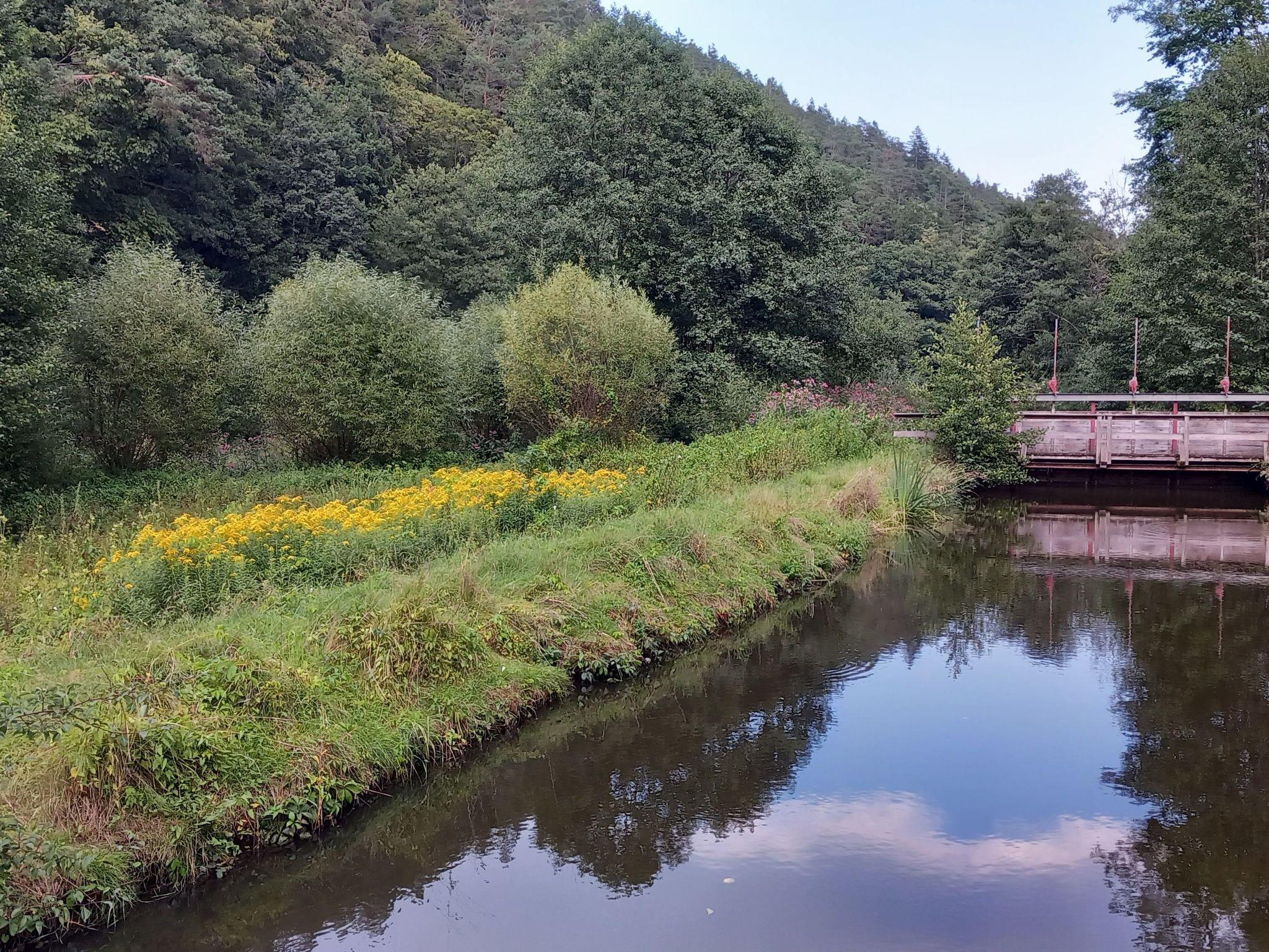 Time out in Mittermurnthal - MODERN - MINIMALIST .... Guests at the Mittermurnthal holiday flat in the Upper Palatinate Forest Nature Park can expect an exciting setting of green parkland, industrial relics and minimalist design. The flat is surrounded by meadows and forests on the site of a former glass grinding and polishing works directly on the Schwarzach river in the wildly romantic Murnthal. The region used to be an important location for glass grinding, an industry that has long since died out. Today you can enjoy peace and nature here. Hikers, cyclists, anglers and nature lovers come here to enjoy their sporting activities. The listed property is a three-sided complex consisting of a residential building from 1913, a former glass warehouse and a former foreman's building. The 150 m² holiday flat on the ground floor of the villa is accessed via a wooden staircase from the courtyard. The comfortable furnishings and purist, straightforward interior design contrast with the morbid charm of the exterior. On the ground floor of the historic villa, we have renovated a spacious, luxurious holiday flat for two adults and two children. The interior of the listed building has been given a modern design, while the exterior has retained its morbid charm.