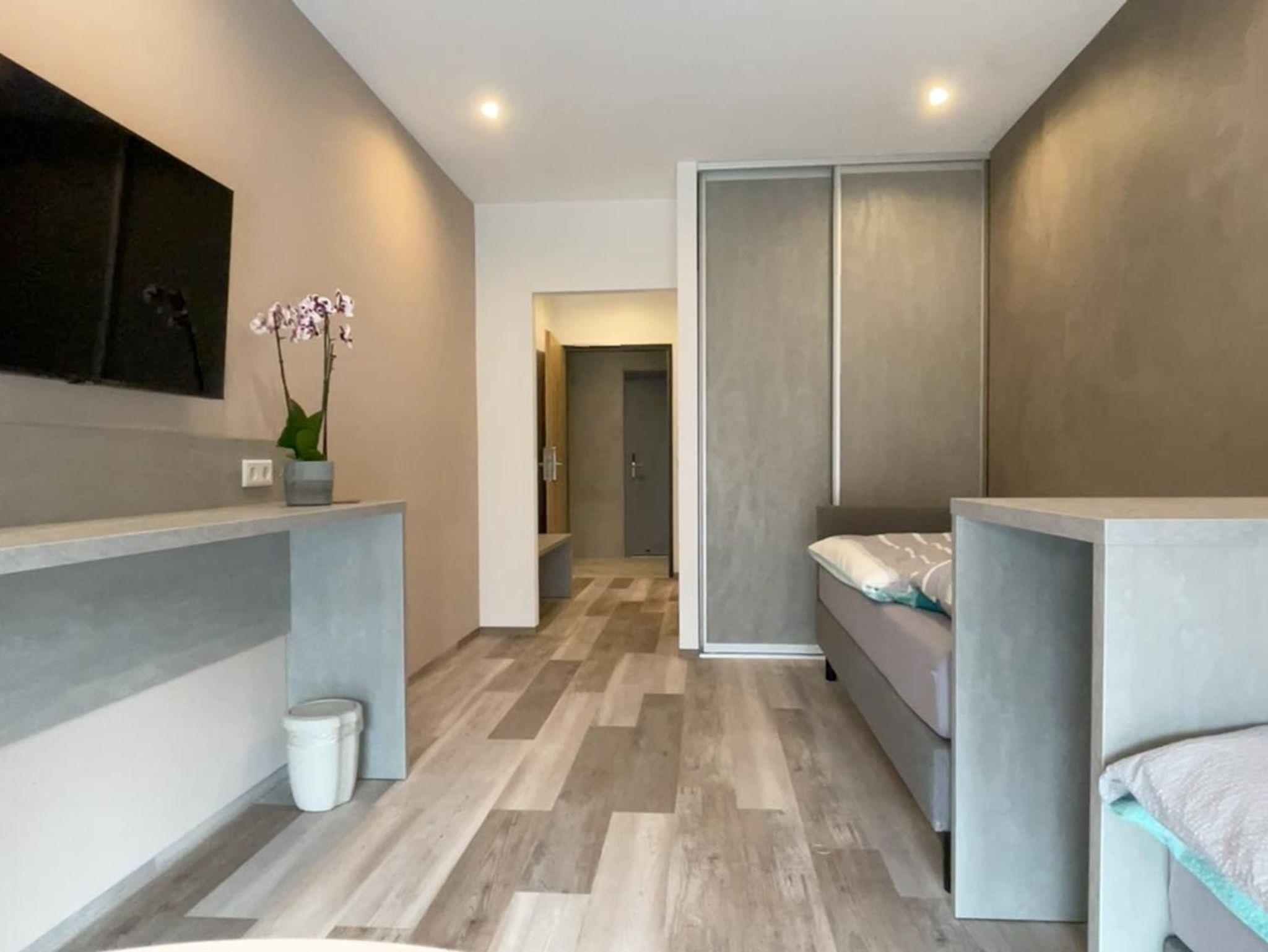 Alle Zimmer verfügen über ein helles Bad mit Dusche und WC, Eingang mit Garderobe, und großen Schlafraum mit WLAN, Flat-TV und komfortabler Fußbodenheizung.