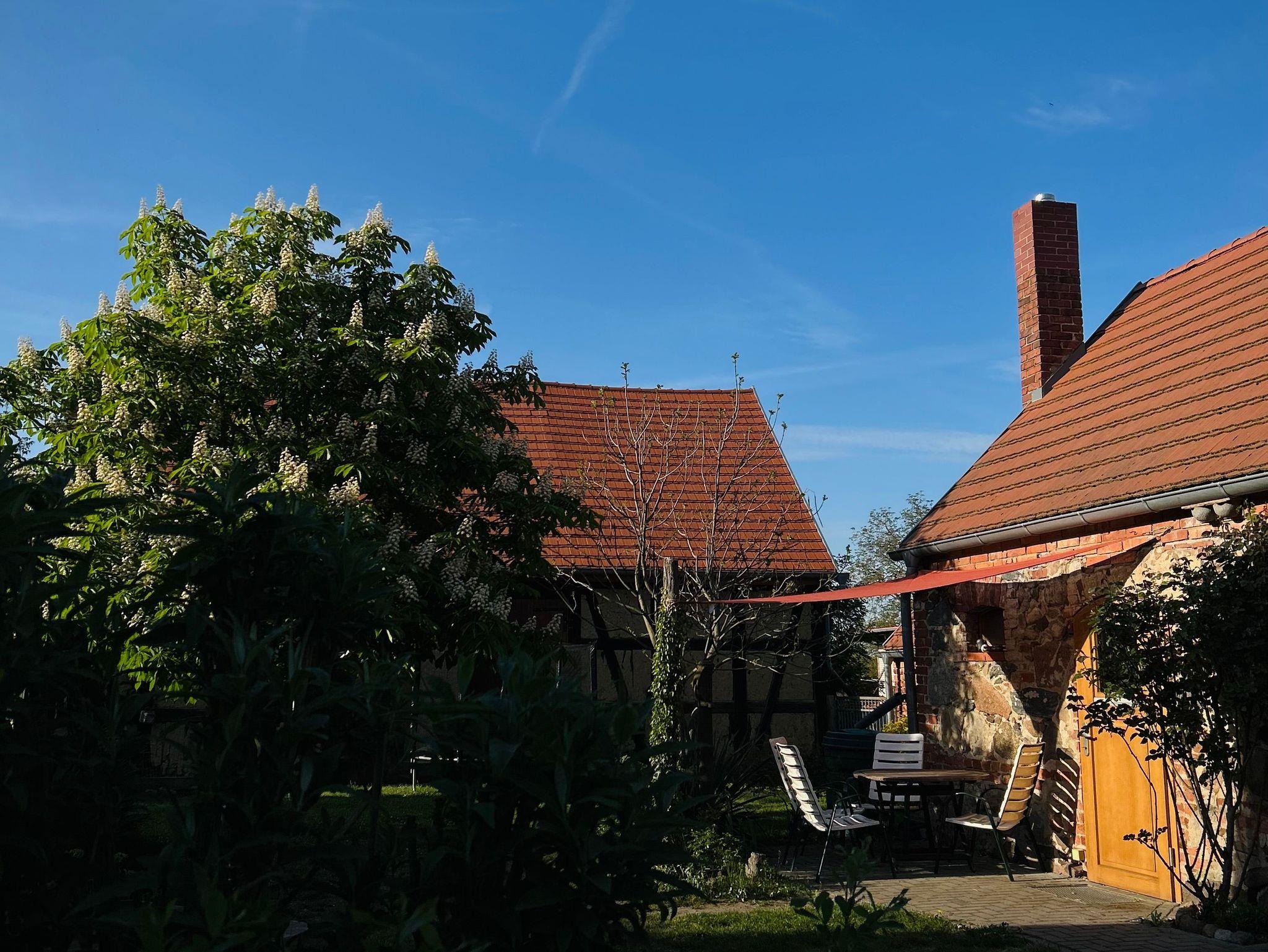 Ausgebauter Dreiseitenhof mit Tierhaltung (Alpacas, Esel, Schafe, Hühner, Zwergziegen, Katze und Hund), begrünter Hof mit mehreren Sitz - und Sonnenplätzen, Ferienwohnungen im ehemaligen Stallgebäude (ca. 200 Jahre alt), ruhig gelegen in einer Spielstraße, moderne Ausstattung auf 2 Etagen, Dachgeschoss mit schrägen Wänden und niedrige Deckenhöhe, Nichtraucherwohnung, Fußboden mit Fliesen und Laminat, 1 Schlafzimmer mit Doppelbett 180 cm x 200 cm, 1 Schlafcouch im Wohnraum, Wohnraum mit TV, Fußbodenheizung und Holzofen, 1 Bad mit Badewanne und WC, Aufbettung für Kleinkinder im Alter bis 3 Jahren möglich.