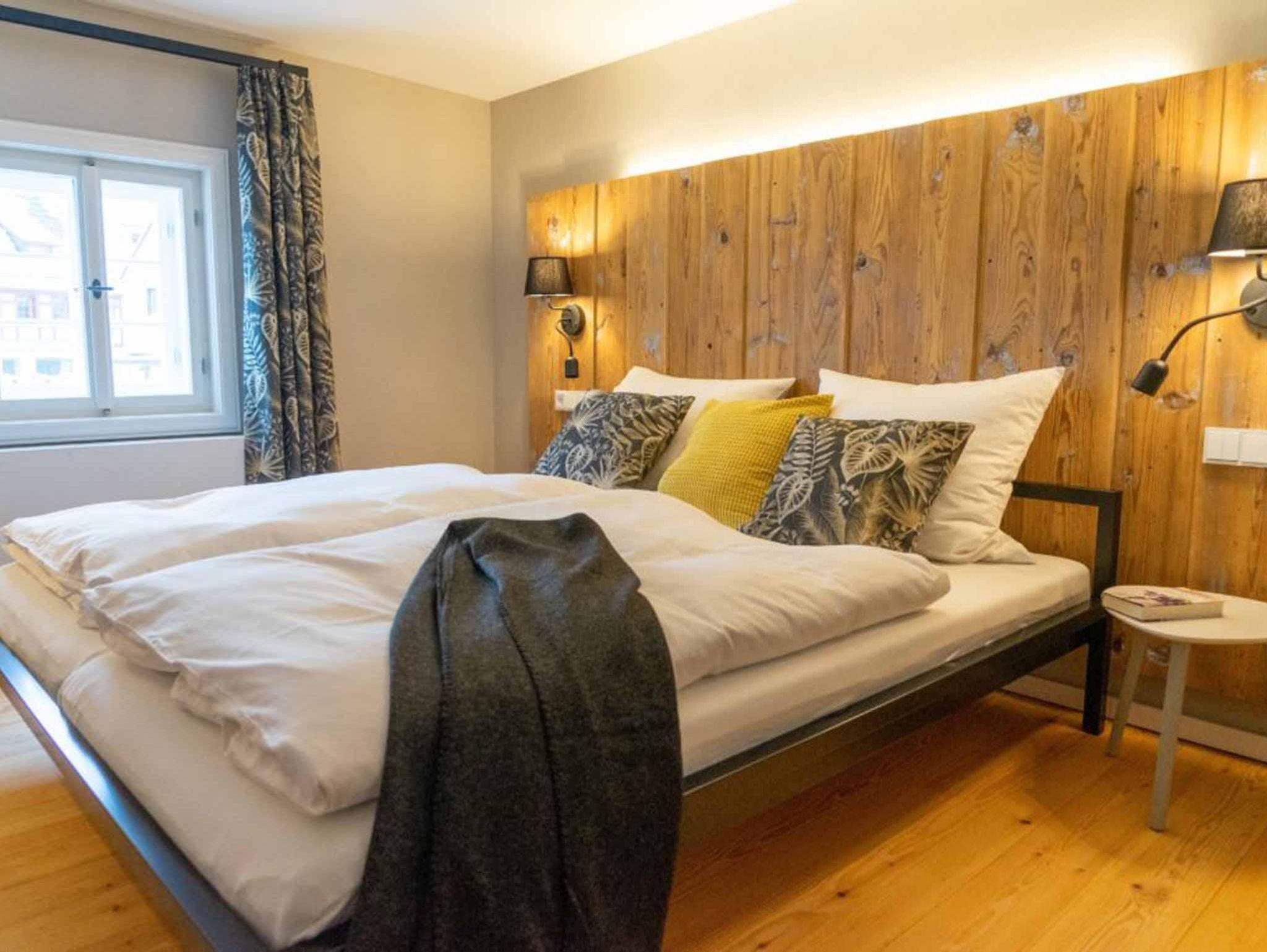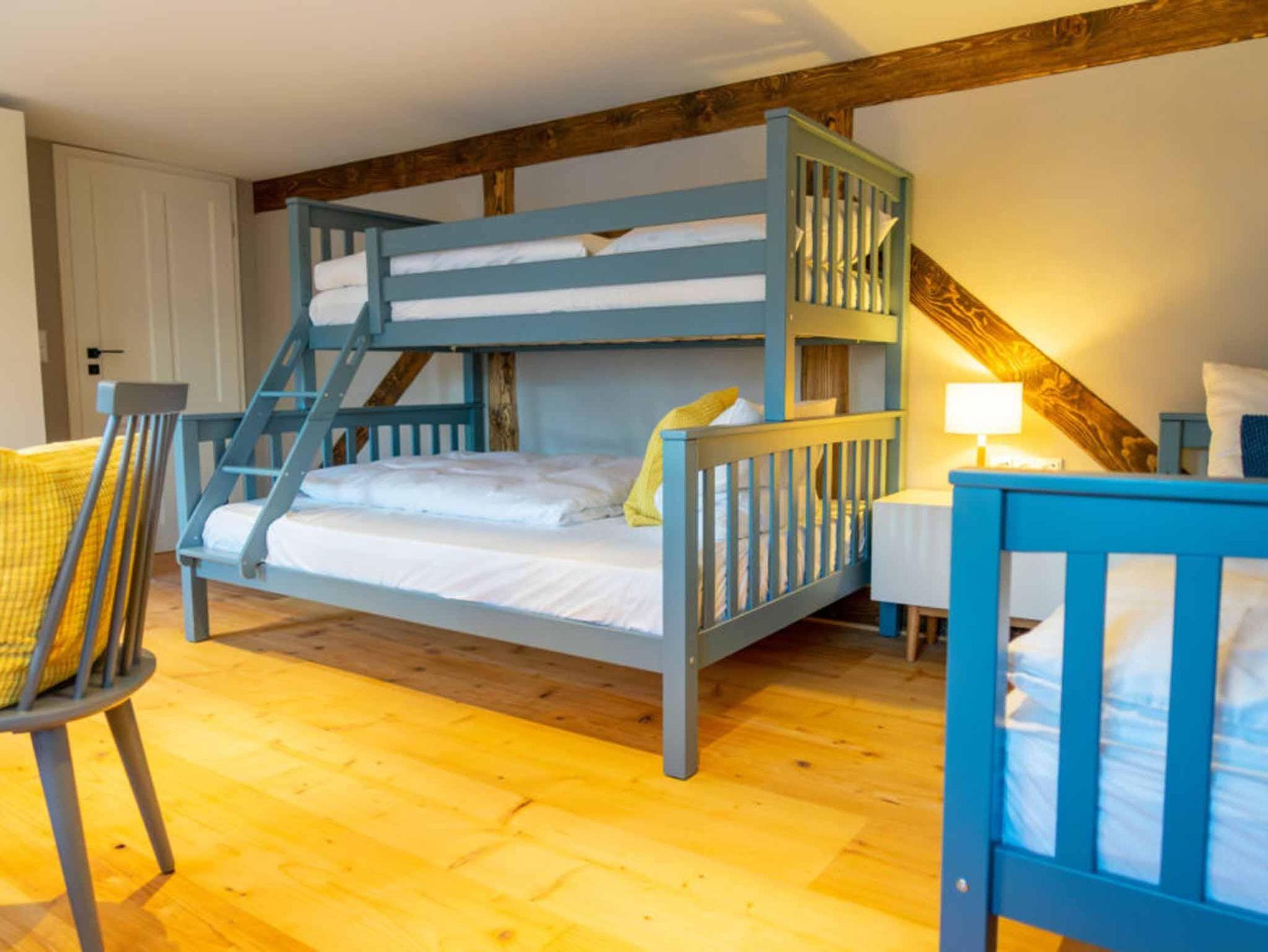 Das Familienapartment. Ein stilvoll-gemütliches Elternschlafzimmer und ein richtig großes Kinderzimmer mit drei Betten. Dazu noch Platz für bis zu zwei Kleinkinder im Babybett. Zusammenkommen im offenen Wohn- und Essbereich mit moderner Küche.