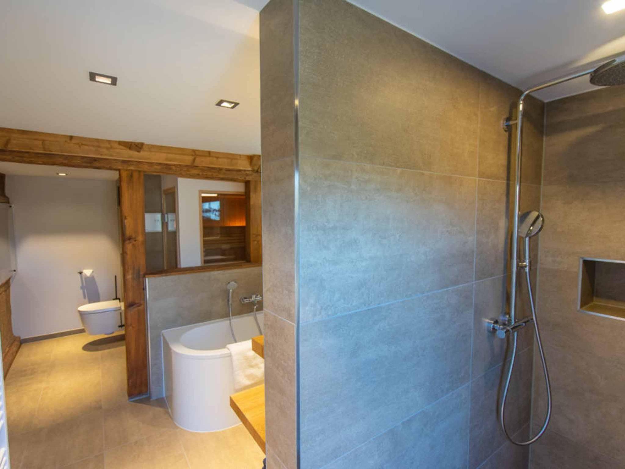 Bad/Sanitär: Dusche, Badewanne, WC, separates WC, Sauna, Föhn