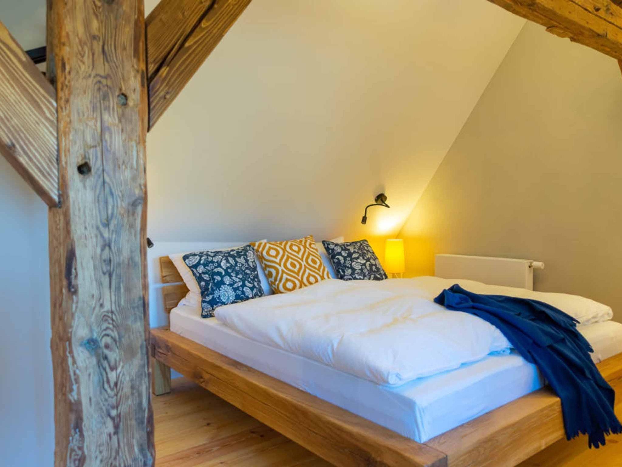 Direkt unterm Dach: Das gemütliche, luxuriöse Apartment für zwei. Ganz viel Wohlfühlatmosphäre im offen gestalteten Wohn-, Ess- und Schlafbereich auf großzügigen 50 m². Durch die große Fensterfront zum Garten hin strömt viel Tageslicht – Blick über das Spreetal ins Oberlausitzer Bergland inklusive.