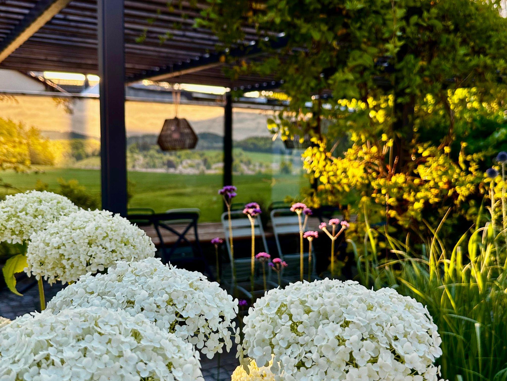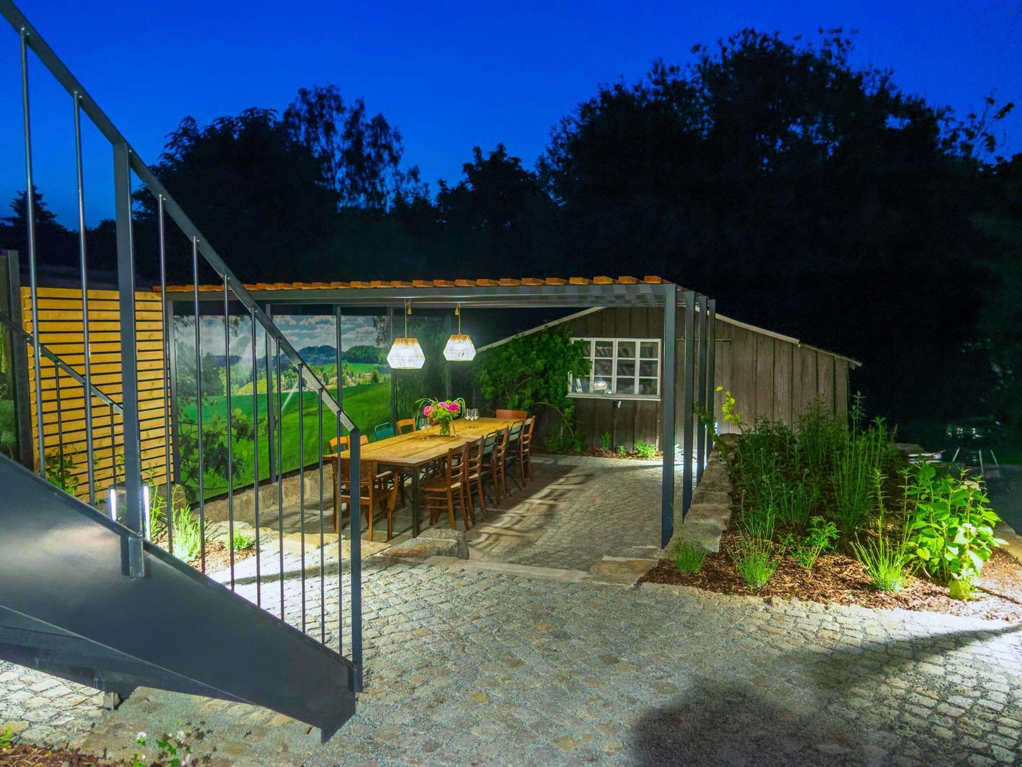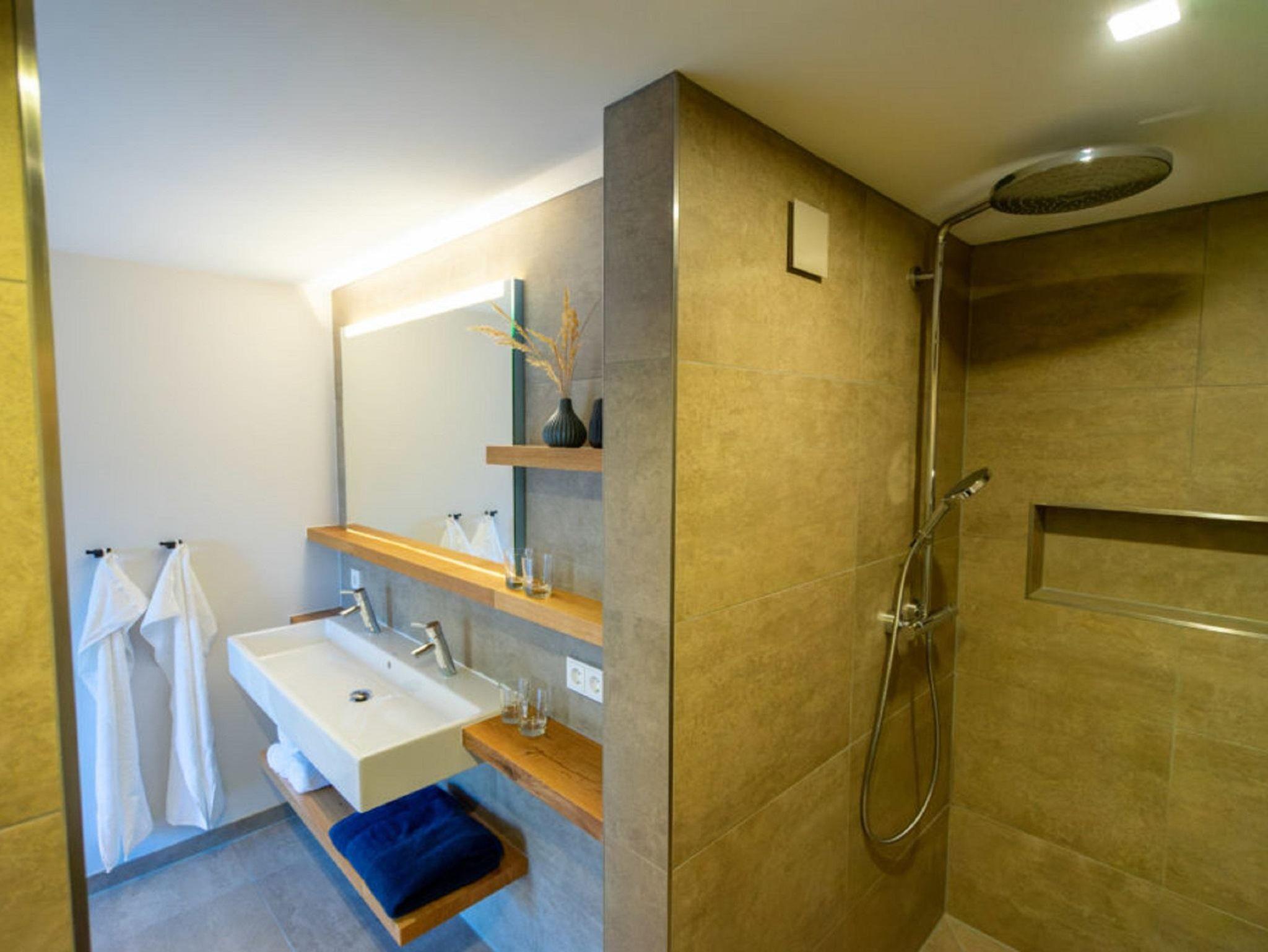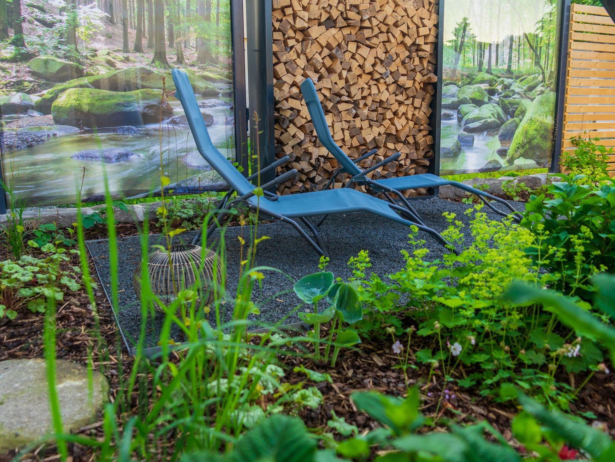 Ein großzügiges Wellnessbad mit Dusche, Badewanne und privater Sauna sorgt für Entschleunigung vom Alltag. Aus der Wohnung gelangen Sie direkt in den weitläufigen Garten mit idyllischen Sitzbereichen und Rückzugsmöglichkeiten unter alten Obstbäumen.