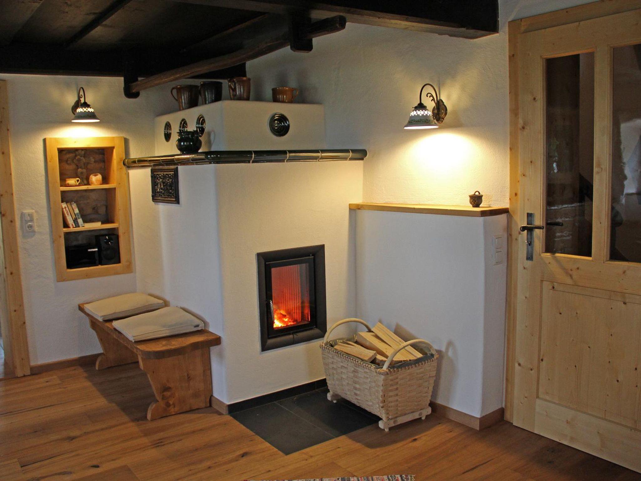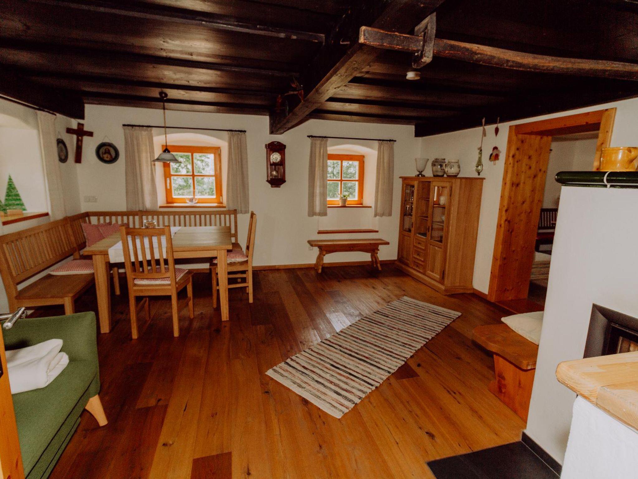 In der großen Stubn mit seiner alten Holzdecke steht eine gemütliche Eckbank und ein Kanapee. Für zusätzliche Wärme und Behaglichkeit sorgt der Kachelofen mit Kachelofenbank. Zum Lesen, Entspannen und Fernsehen ist im 1. Stock eine heimelige Galerie mit Couch, SAT-TV und Hifi-Anlage sowie kostenlosem W-LAN-Empfang eingerichtet.