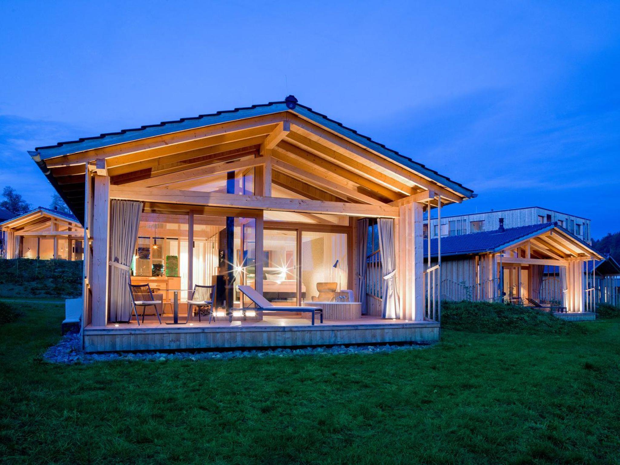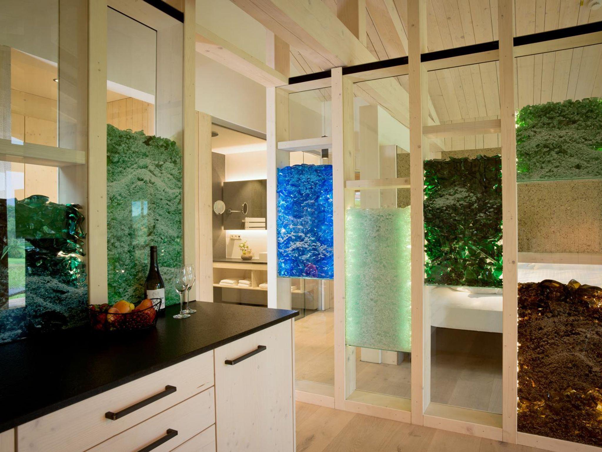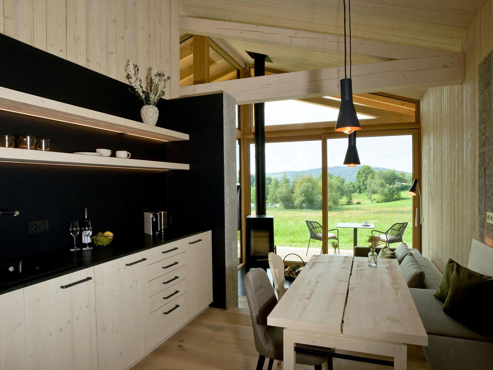 Die Chalets sind aus heimischen Materialien gebaut: Holz aus dem bayerischen Wald, Stein aus den Granitwerken der Region und Glas aus der nahegelegenen Glasmanufaktur von Poschinger in Frauenau. So ist jedes Chalet Woidhaisl einmalig!