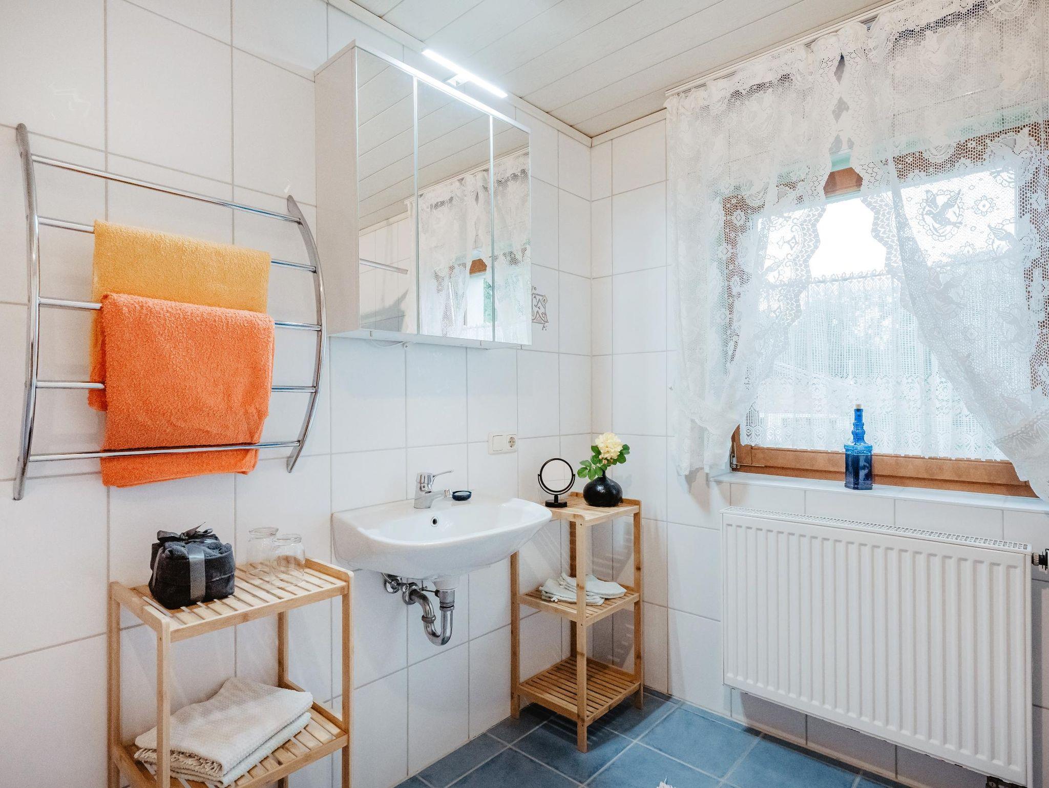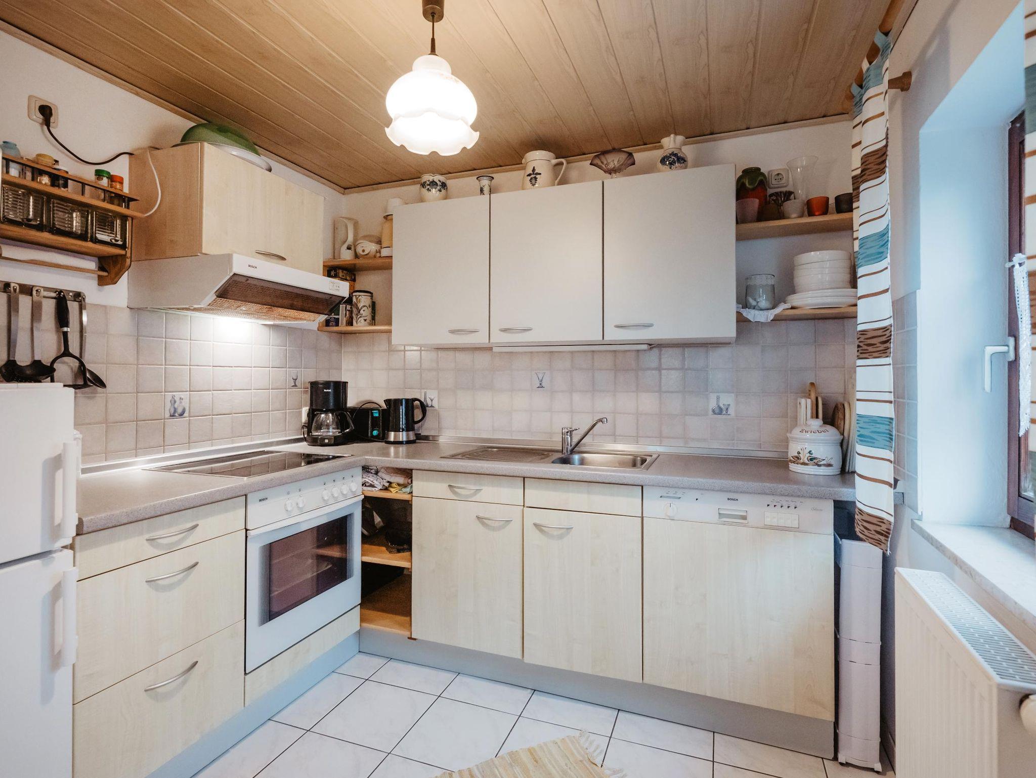 Unsere Ferienwohnung mit 75m² Wohnfläche bietet Platz für bis zu 5 Personen. 2 weitere Kinderbetten stehen auf Anfrage zur Verfügung. Das gemütliche Wohnzimmer mit Essecke, Sofa und Fernseher lädt zum Verweilen ein. Die komplett ausgestattete Küche mit Geschirrspüler, Kühlschrank inkl. Gefrierfach, Elektroherd, Backofen, Mikrowelle, Wasserkocher, Toaster, Mixer und Kaffeemaschine lässt keine Wünsche offen. Die Ferienwohnung verfügt über 2 Schlafzimmer. In einem Schlafzimmer befindet sich ein Doppelbett. Das zweite Schlafzimmer ist mit einem Doppelbett und einem Einzelbett ausgestattet. Das geräumige Badezimmer mit Dusche, Badewanne, WC und Handtuchtrockner rundet das Gesamtbild ab. Zum Reinigen Ihrer Kleidung steht eine Waschmaschine auf Anfrage zur Verfügung. Vor allem im Sommer können Sie entspannte Grillabende auf der Terrasse verbringen. Gartenmöbel sind vorhanden. Bitte beachten Sie, dass Haustiere nur auf Anfrage erlaubt sind. Das WLAN und den Parkplatz vor dem Haus können Sie kostenfrei nutzen.