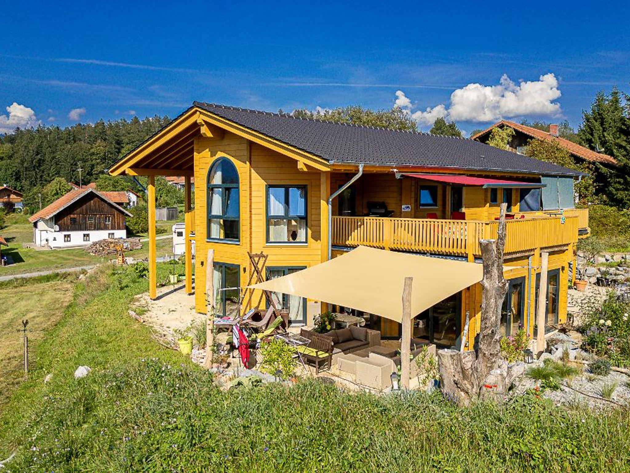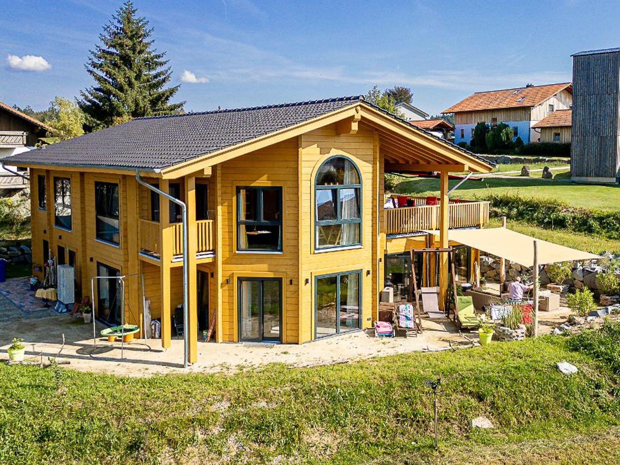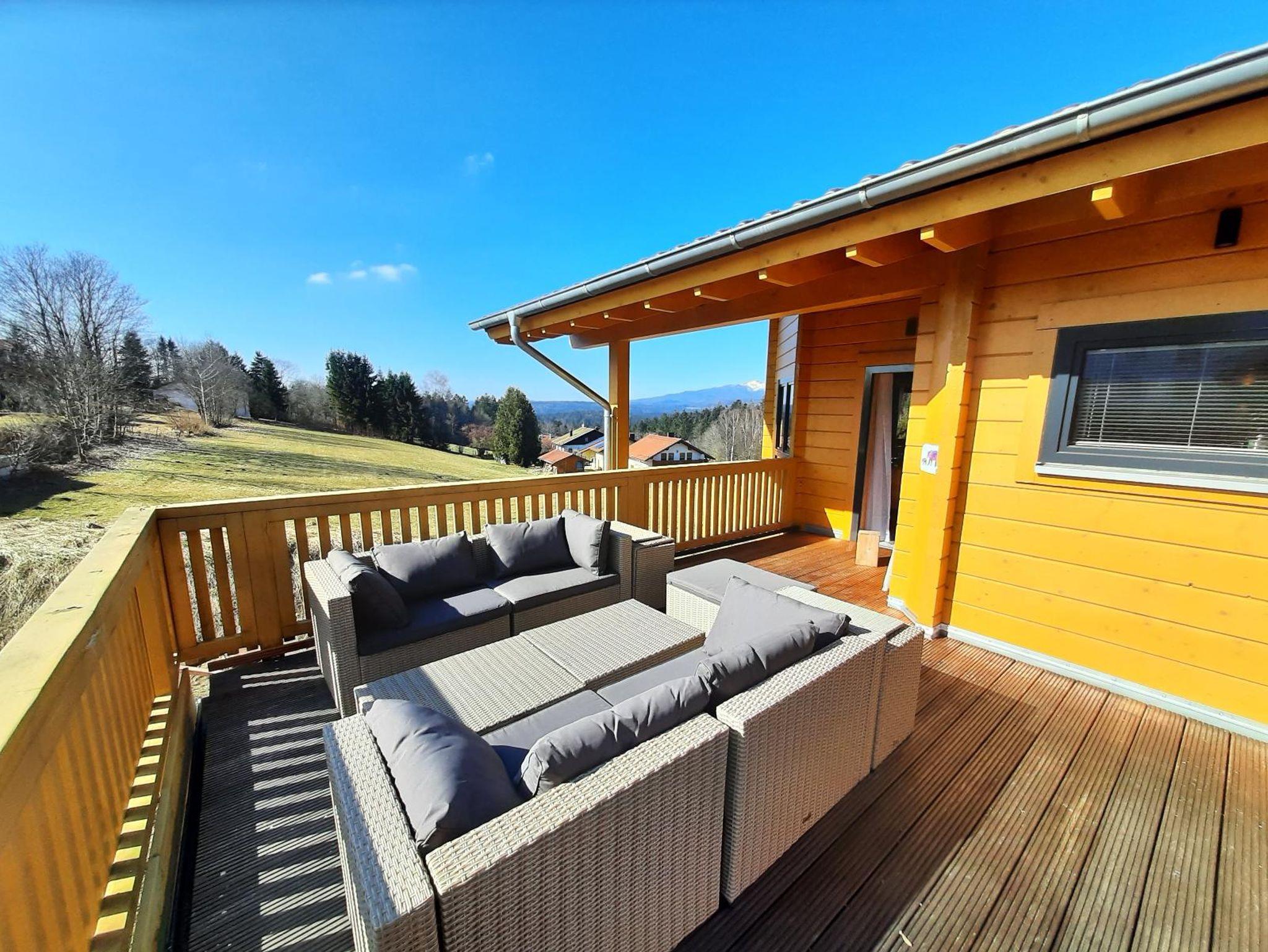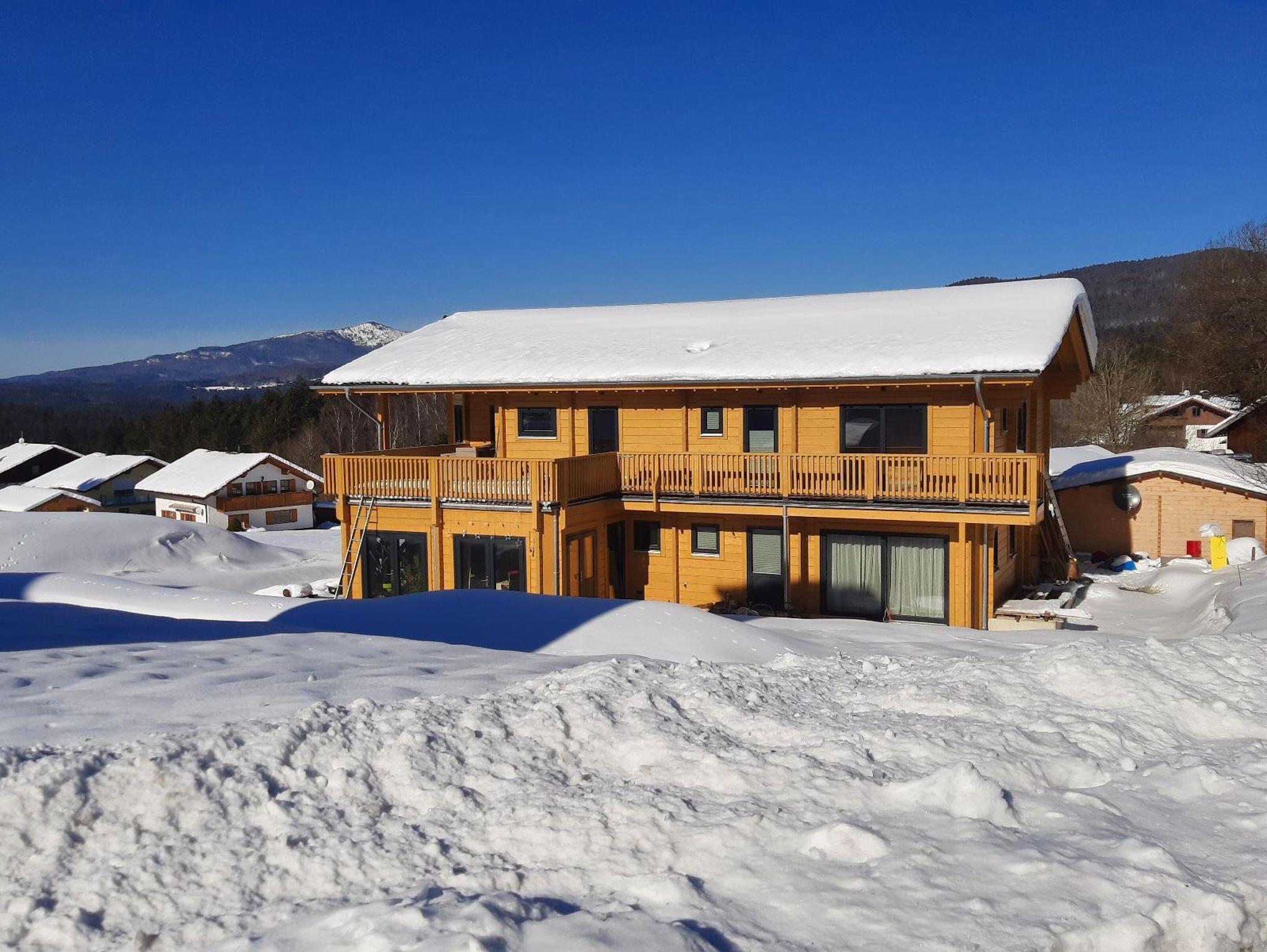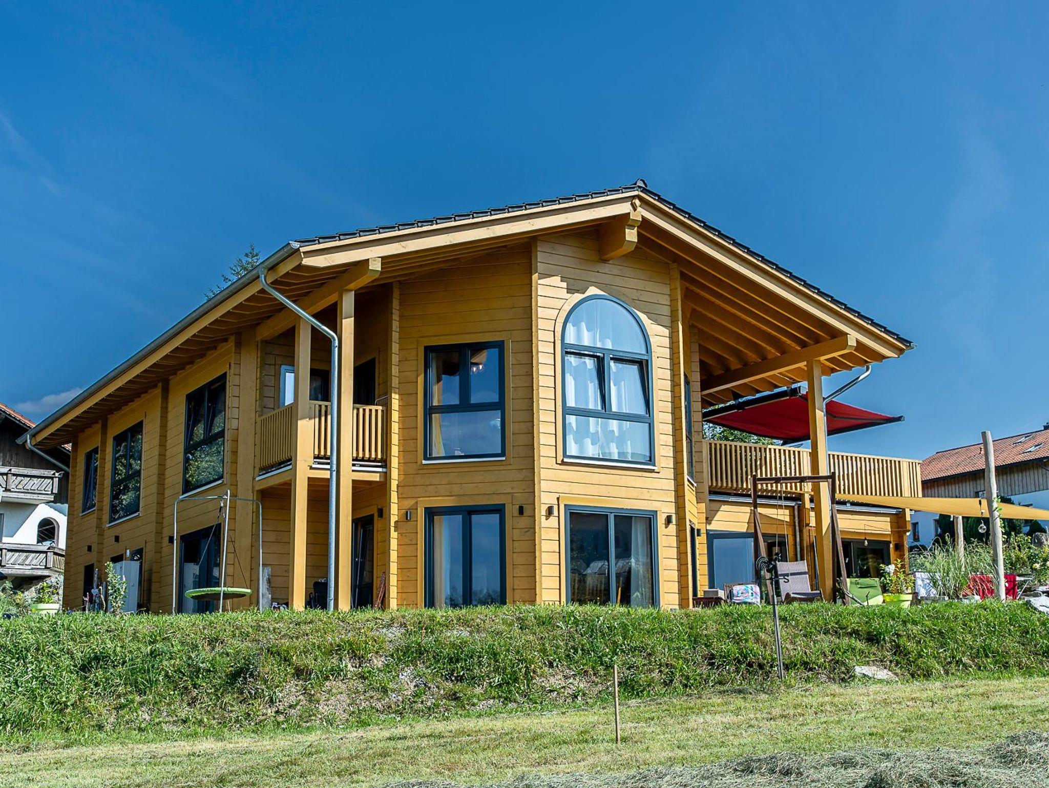 Erholung pur in einmaligem, behaglichem, wohngesundem und nagelneuem Holzblock-Ambiente, mit tollem und aussichtsreichem Bergblick sonnenverwöhnt in ruhiger Ortsrandlage von Neuschönau direkt am Wanderweg nur 10 Fußminuten vom Ortskern und zum Tierfreigelände, Baumwipfelpfad und Nationalparkzentrum am Fuße des Lusen gelegen.