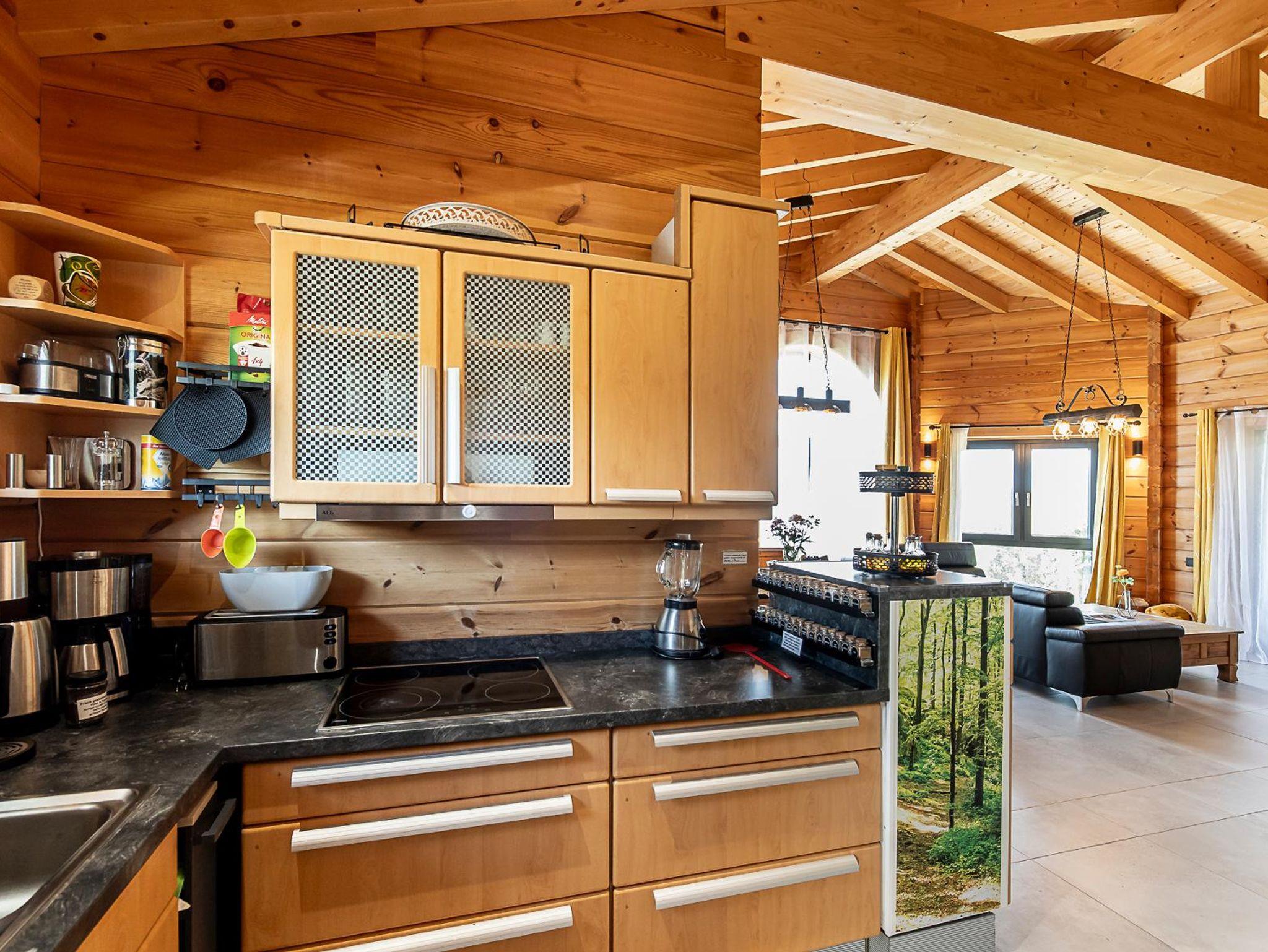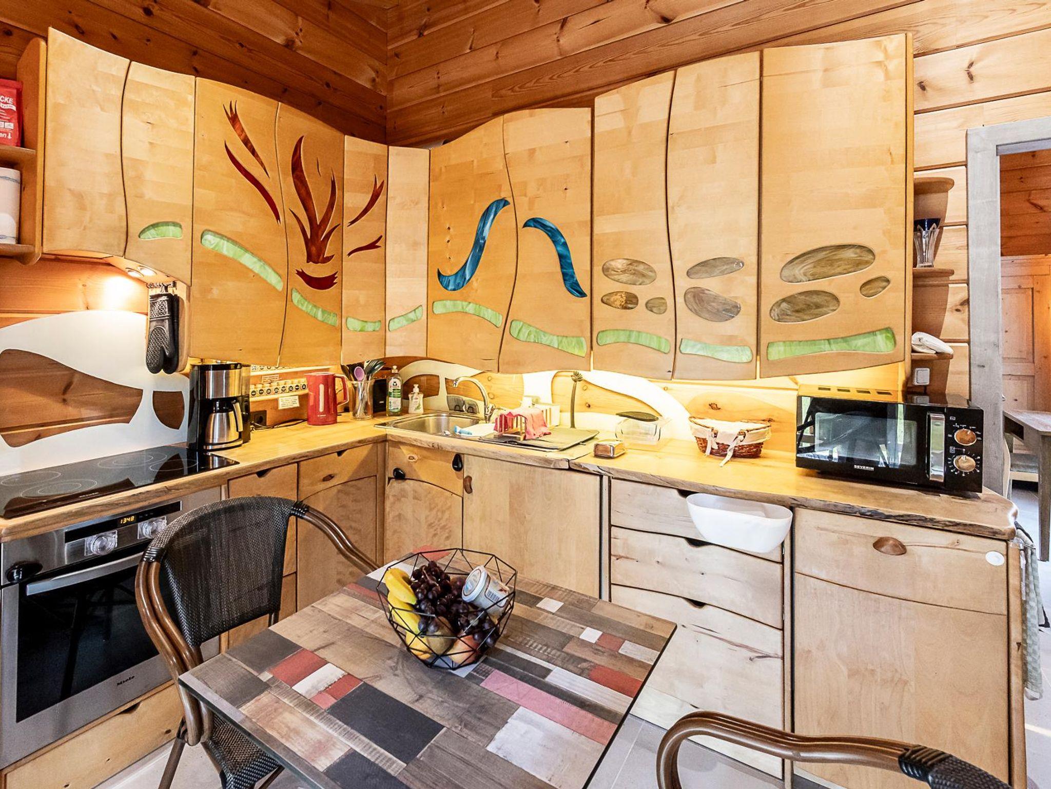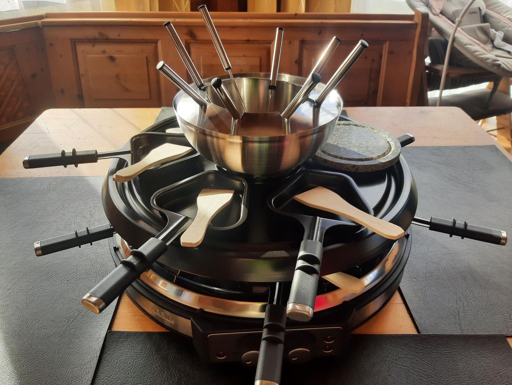 Die Küche wird jeden Gast mit ihrer besonders umfangreichen Ausstattung begeistern. Ofen, Mikrowelle, Spülmaschine, ein 4flamm-Cerankochfeld mit Dunstabzug sowie ein großer Kühl- und extra Gefrierschrank stehen bereit, 2 Apotheker-Ausziehschränke, große Schubladen für Töpfe und Geschirr und ein großer Schrank für bereitgestellte Putzutensilien, Bügelbrett und Staubsauger sind praktisch. Vorhanden sind weiterhin ein ansprechendes und 8teiliges, weißes Porzellan-Geschirrset, zusätzlich 6 große Pizza- und Pastateller, Leder-Tischsets, Wassersprudler mit Glasflaschen, Wasserkocher, eine moderne Melitta-Kaffeemaschine mit Thermoskanne, ein Espressozubereiter und Milchschäumer, eine French-Press-Kaffeekanne, eine Edelstahl-Thermos-Teekanne, Toaster, Eierkocher, Handmixer, Standmixer mit Glaskanne, Zerkleinerer, Pürierstab, elektrische Orangenpresse, Backformen, Muffinform, usw. . Von Wein- und Sektgläsern bis hin zu großen Aperolgläsern, einem Barmixset, etlichen Töpfen, Pfannen, Bräter, Schneidbrettern und Schüsseln in vielen verschiedenen Größen, Gefrier- bzw. Brotzeitboxen, Dipschälchen, Ess-Stäbchen, Edelstahl-Strohhalmen, Serviettenringen und allem, was in der Küchenschublade Sinn macht ist reichlich da. Sogar ein 8teiliges Fondue-/Raclette-Set steht Ihnen zur Verfügung.