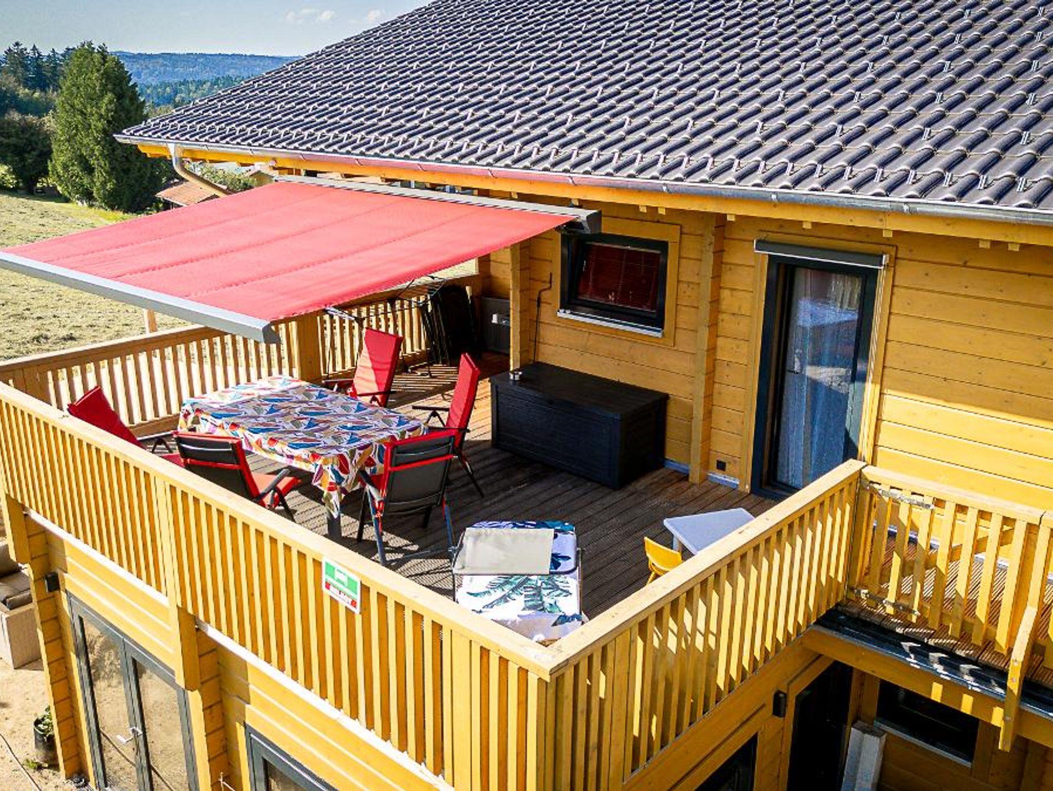 Die Wohnung Bärenhöhle hat 83 qm und ist nagelneu und modern eingerichtet und hat mit dem offenen Sichtdachstuhl in allen Räumen und sämtlichen Wänden aus Holzbalken sowie den riesigen Fenstern ein einmaliges Raumgefühl und bietet eine tolle Aussicht auf Großen Rachel und Lusen, Wiesen und Wald. Sie verfügt über einen kleinen Nord/Nordwestbalkon, eine 30qm große Balkon-Dachterrasse in Süd-/Südwestrichtung, 2 Schlafzimmer mit jeweils Balkonzugang, ein geräumiges Badezimmer mit Regendusche, Badewanne und Balkonzugang und eine große Wohnküche mit 2 Balkonzugängen, Essbereich und großem Ecksofa mit Schlaffunktion. Die vielen modernen Decken- und Wandlampen sind teilweise dimmbar und sorgen für eine besonders angenehme Wohlfühl-Atmosphäre.