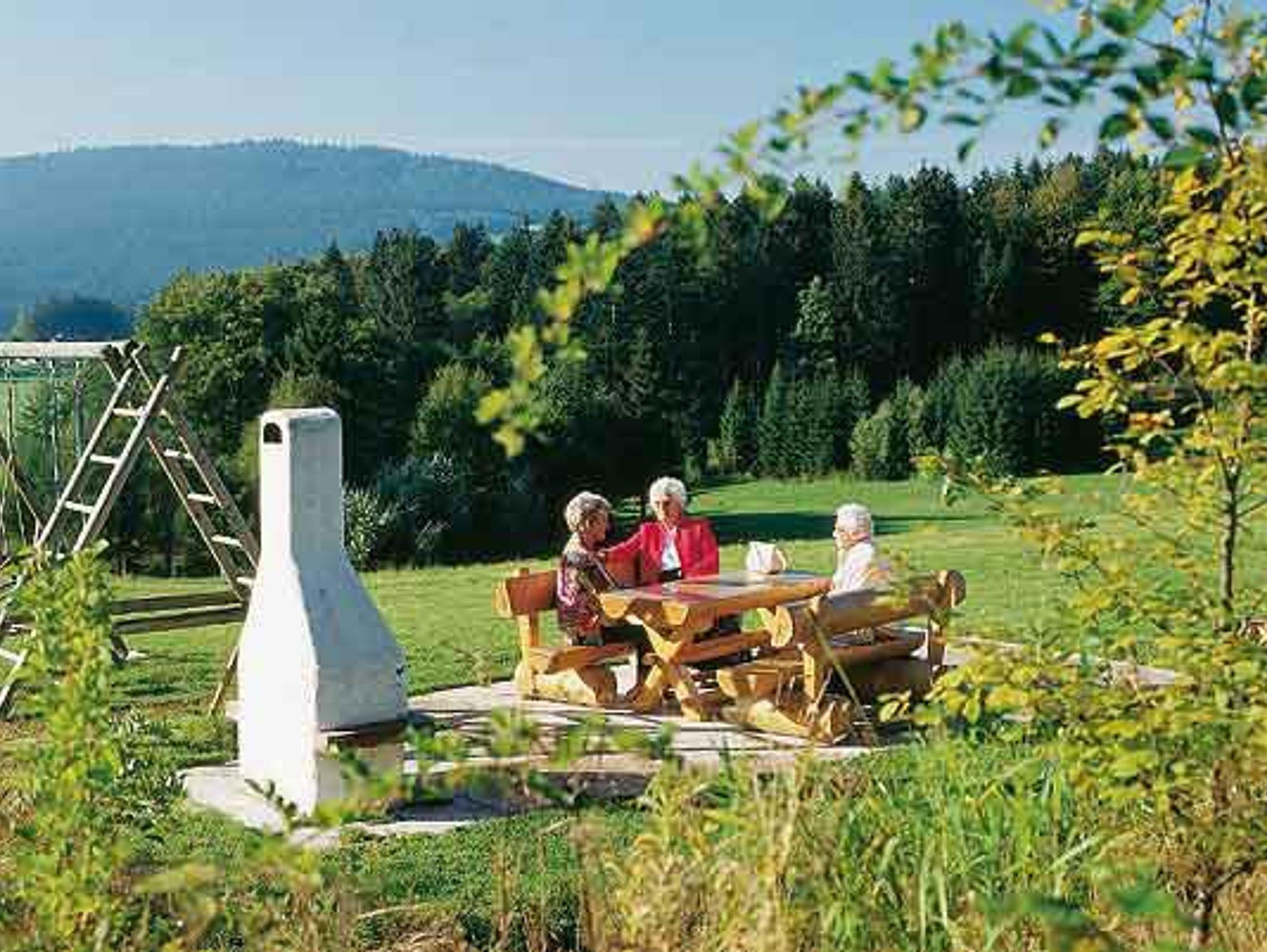 Unsere kinderfreundlichen Ferienwohnungen befinden sich in ruhiger Ortsrandlage an einem unverbauten Südhang. Eingebettet in ein parkartig angelegtes Hausgrundstück genießen Sie einen herrlichen Ausblick. Gemütliche Appartements und Ferienwohnungen mit gehobener Komfort-Ausstattung aus Naturholz. Große sonnige Terrassen bzw. Balkone. Erholungsbereich mit Solarium, Sauna und Ruheraum, Trimm-Dich-Raum und Aufenthaltsraum. Bettwäsche wird gestellt, Handtücher gegen Gebühr. 15.000 qm hauseigenes Freizeitgrundstück mit Gartenhaus, Liegewiese, Spielplatz, Grillplatz sowie Wiesenbächlein mit Naturkneippanlage. Naturbadesee, Nationalpark-Infozentrum, Tierfreigelände, Golfplatz (Green-Fee-Ermäßigung) sind in wenigen Minuten zu erreichen. Winterspaß gewährleistet der direkte Loipeneinstieg nahe am Haus und die Rodelbahn.