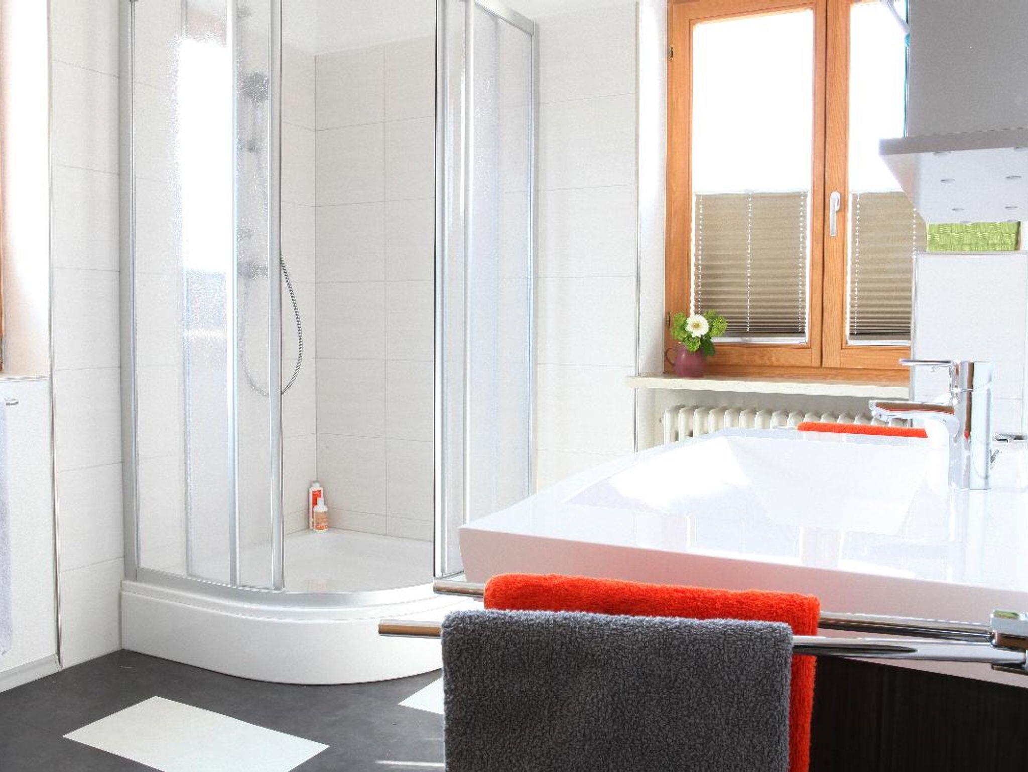 Radio. Das Badezimmer mit Dusche, WC, Fön und Handtücher rundet das Gesamtbild ab.