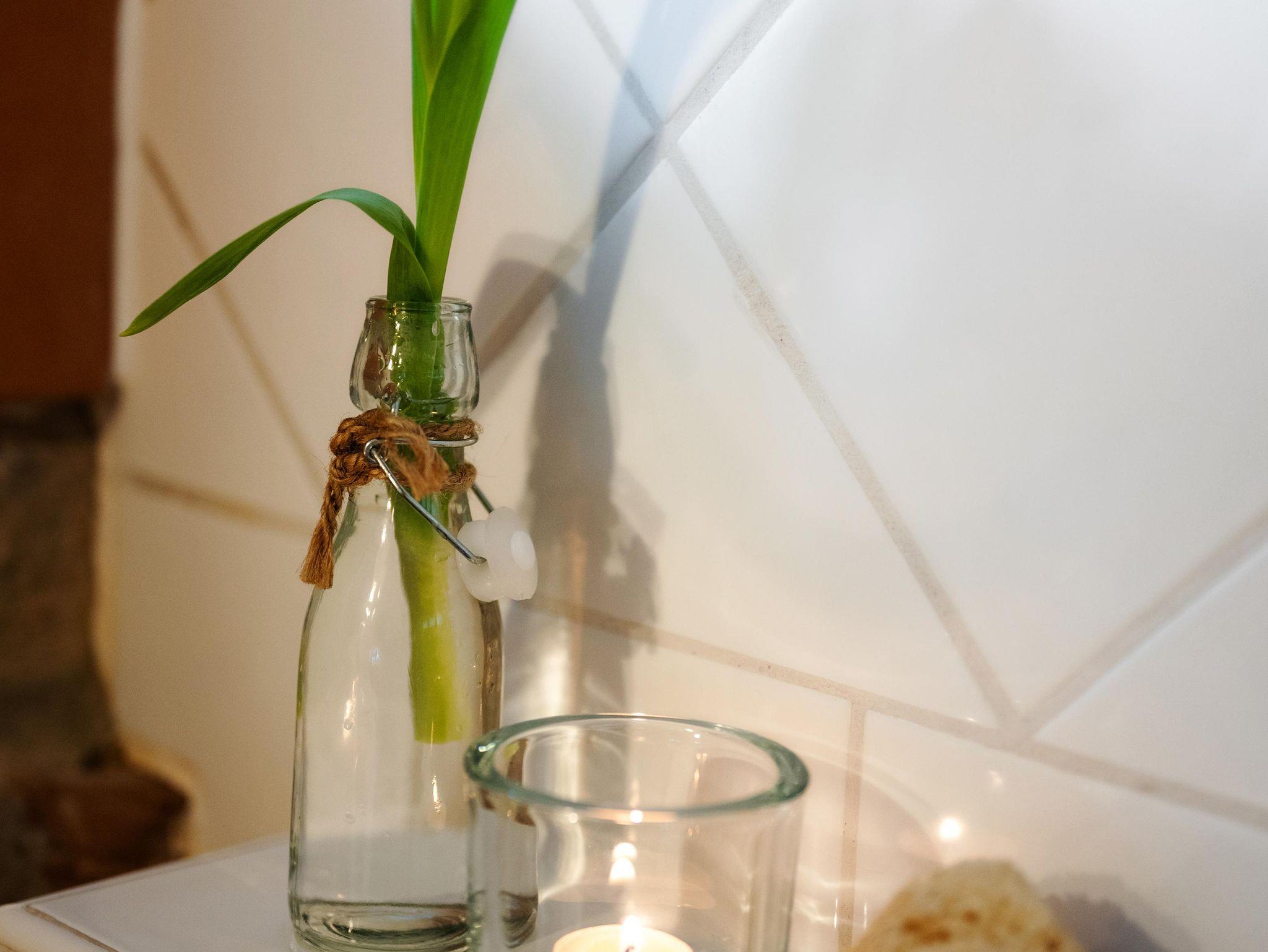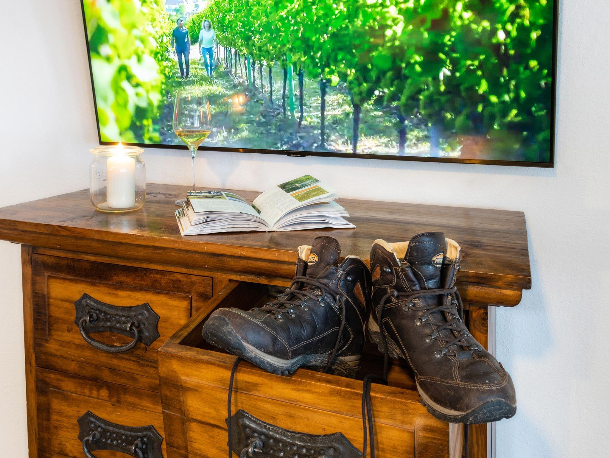Die Ferienwohnung wurde 2020 im ebenerdig begehbaren Untergeschoss der Villa in Hanglage ausgebaut und hochwertig mit Eichenparkett, voll ausgestatteter Küche, benutzbarem Kaminofen (Holz inklusive) und Boxspringbett gemütlich eingerichtet.