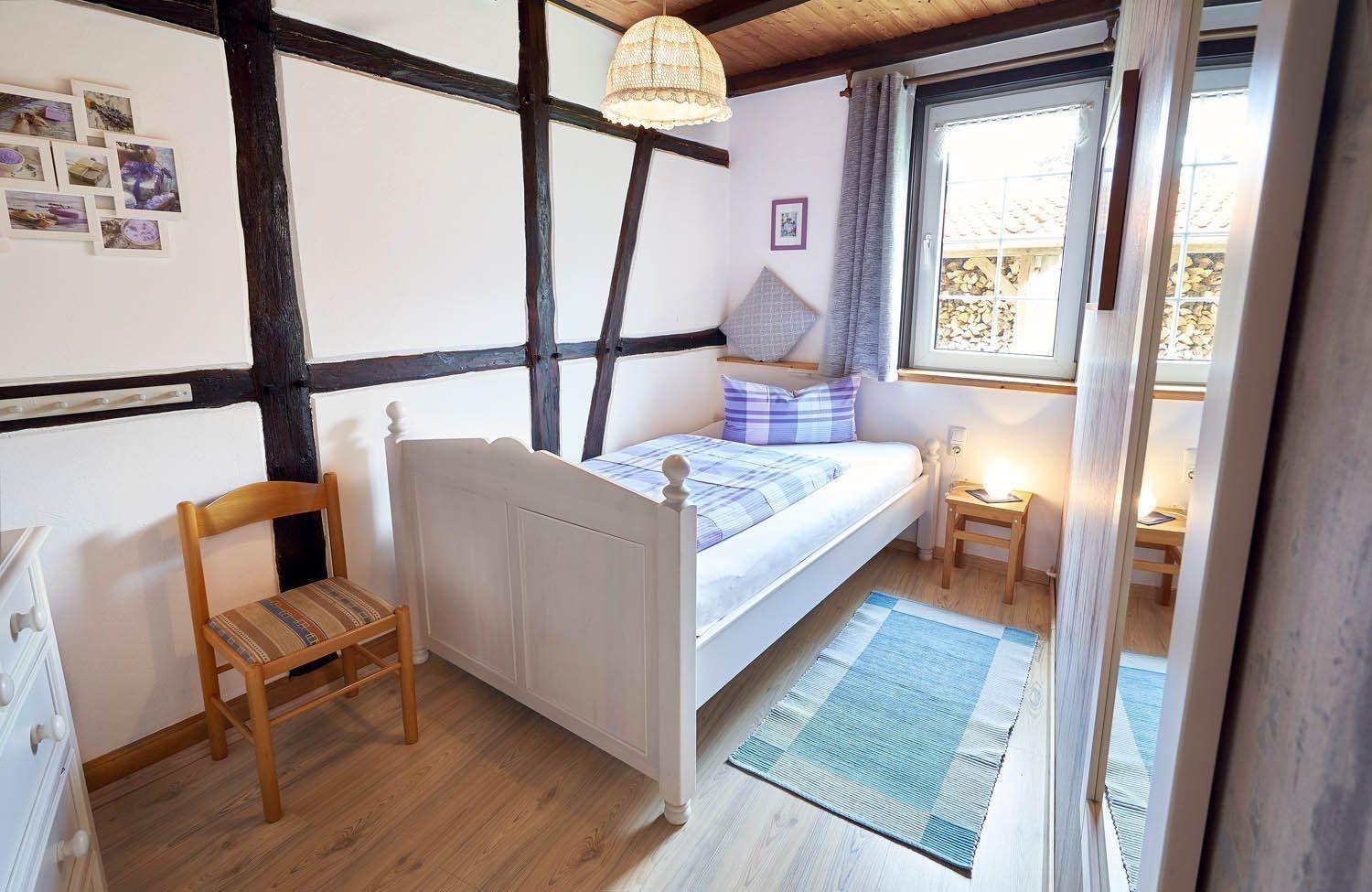 Im kleinen Schlafzimmer erwartet Sie ein weiteres Einzelbett, in welchem der dritte Gast erholsame Urlaubsnächte genießen kann. Eine Kommode bietet Staumöglichkeiten für die Urlaubsgarderobe.