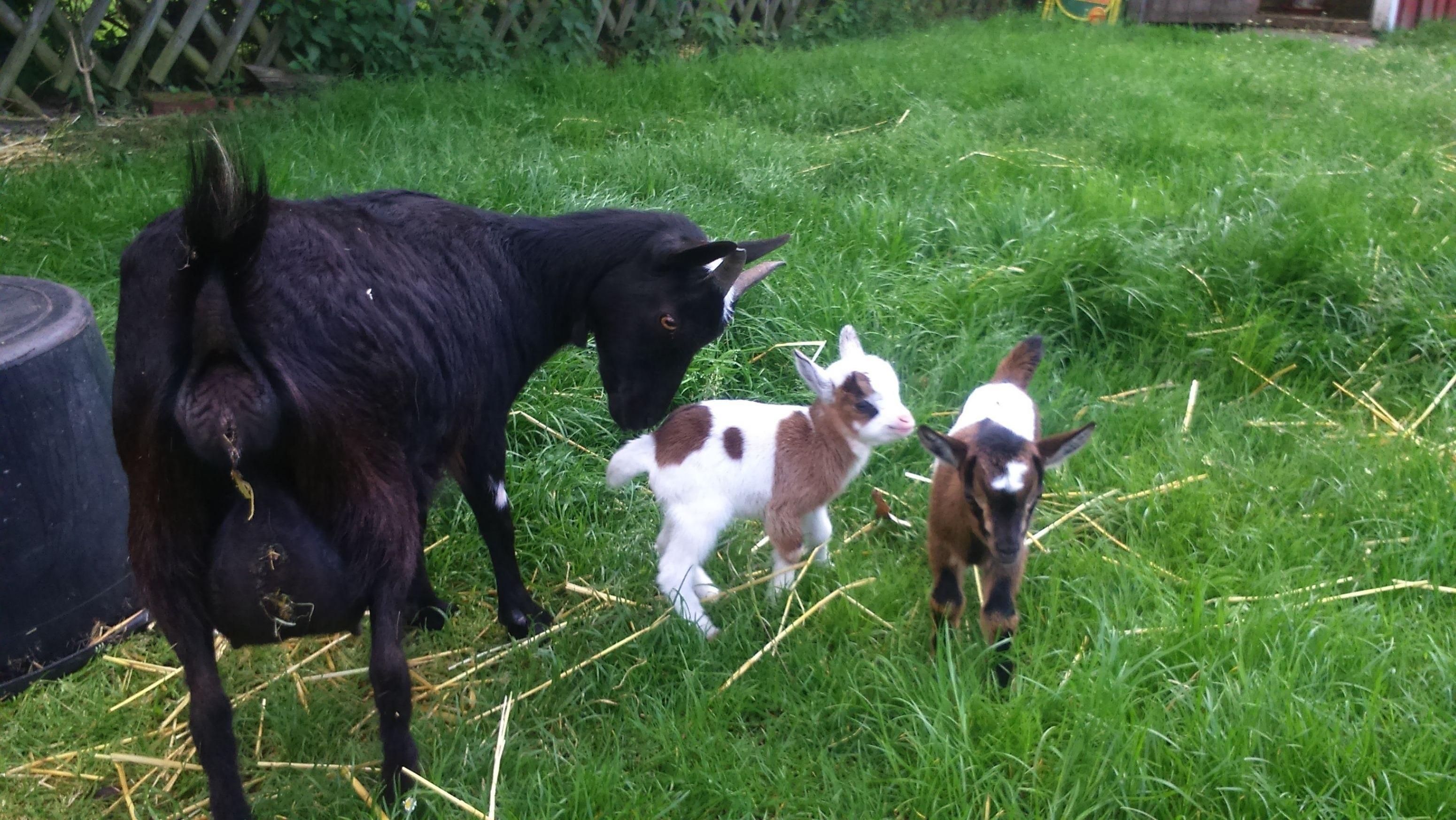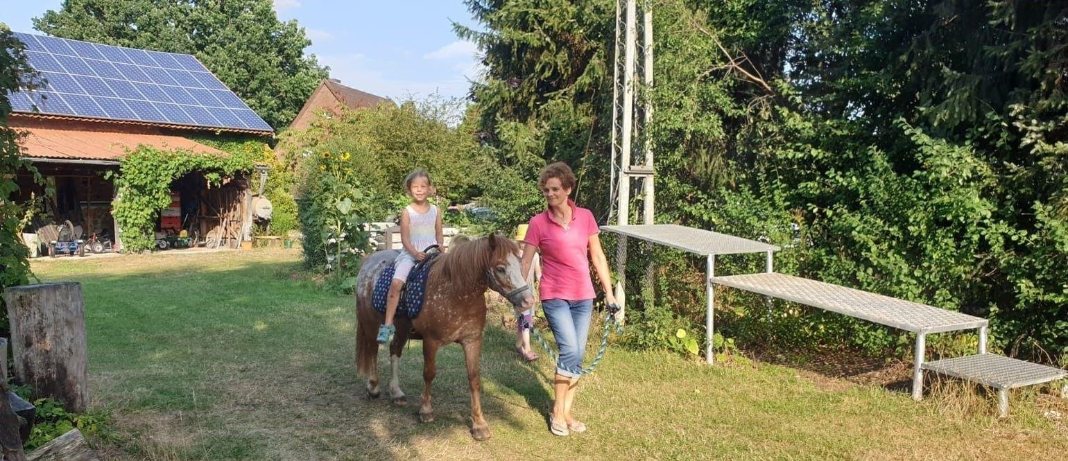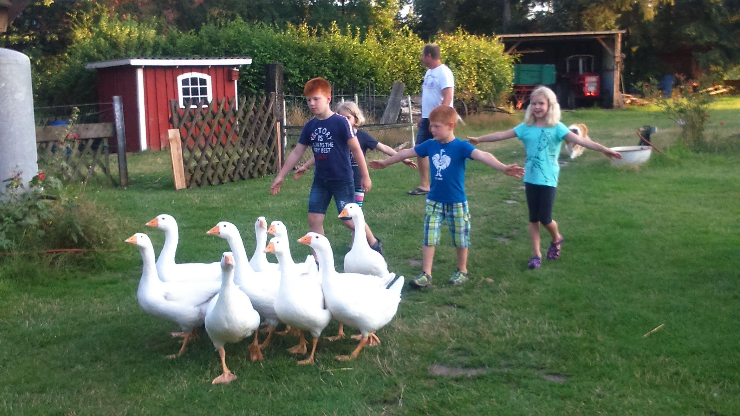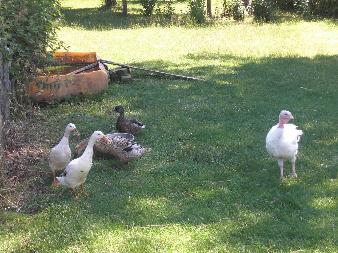 Neben dem Pony "Cora" der Colliehündin "Jessy", zwei Ziegen und natürlich Katzen haben wir noch Kaninchen, ein Meerschweinchen, Hühner, einen Hahn, Enten und Gänse.