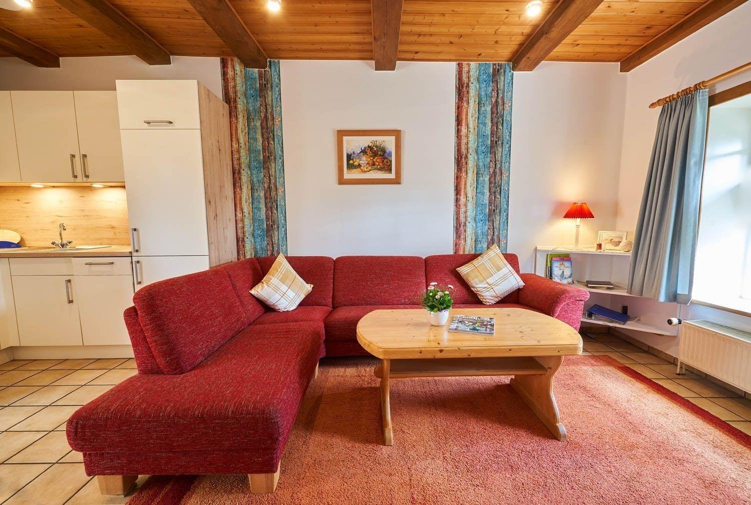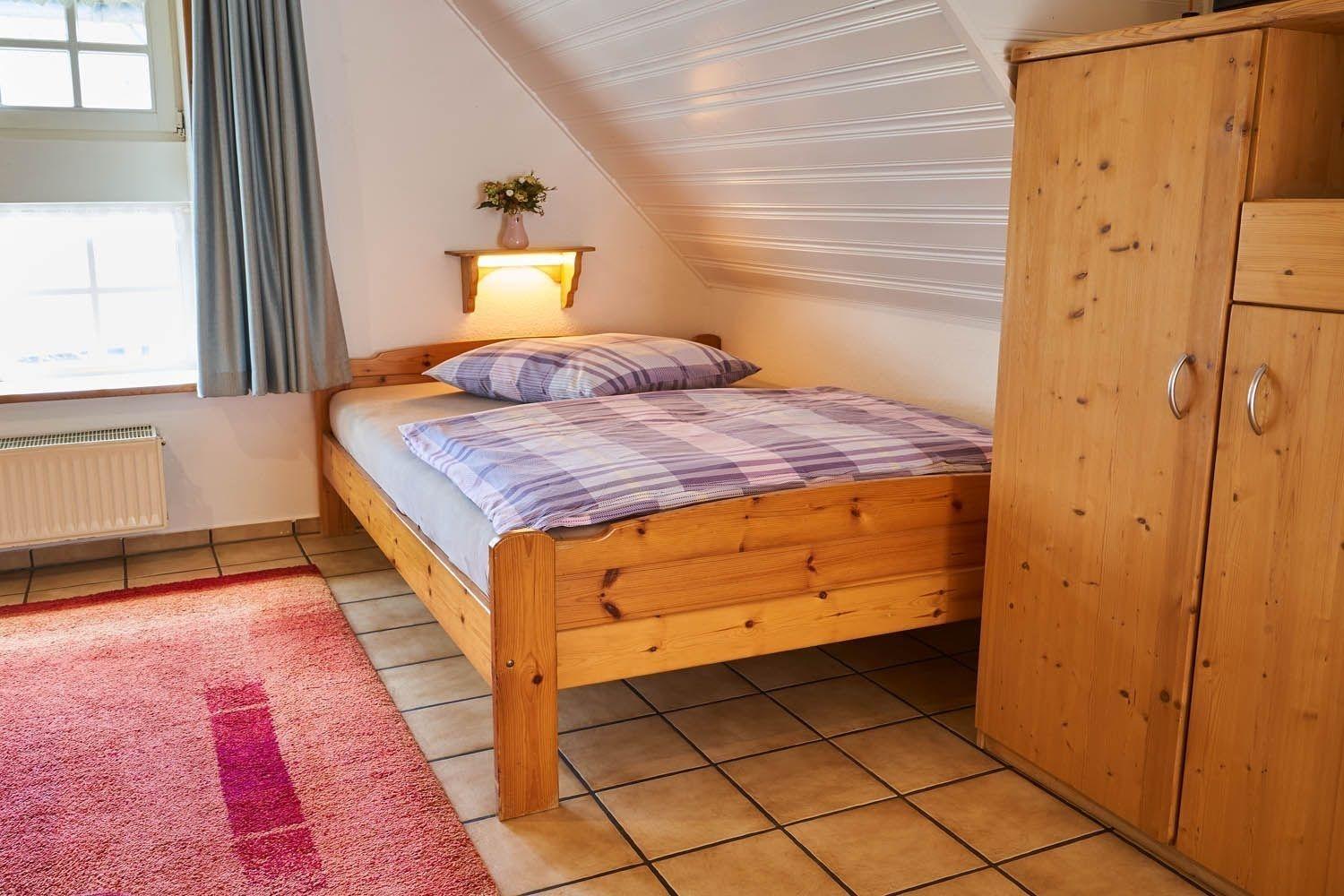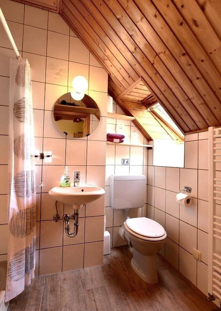 Die Ferienwohnung im Obergeschoss ist 36 m² groß, hat für max. 3 Erwachsene Personen (2 Erwachsene / 2 Kinder )Platz und bietet Ihnen ein Wohn-/Schlafzimmer mit Essecke und Küchenzeile, ein kleines Schlafzimmer und ein Dusch/WC. Wlan kostenlos