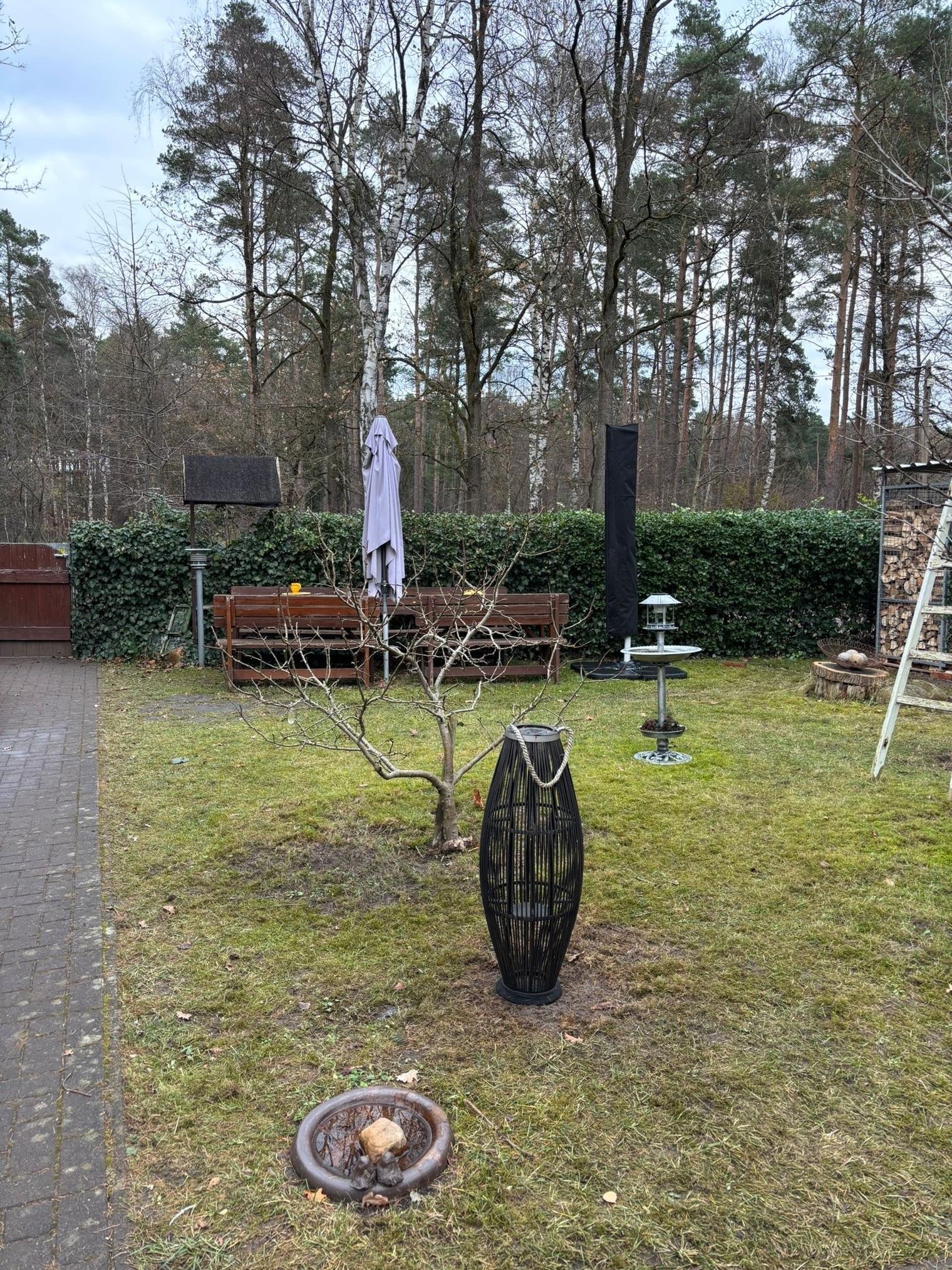 Der eingezäunte Vorgarten gehört zum Apartment und ist ideal für Gäste mit Hund. Direkt vor der Haustür beginnen Waldwege für Spaziergänge, kleine Auszeiten oder einfach frische Luft. Nach etwa 15 Minuten Fußweg erreichst du eine wunderschöne Heide – einfach tiefer in den Wald gehen und rechts halten.