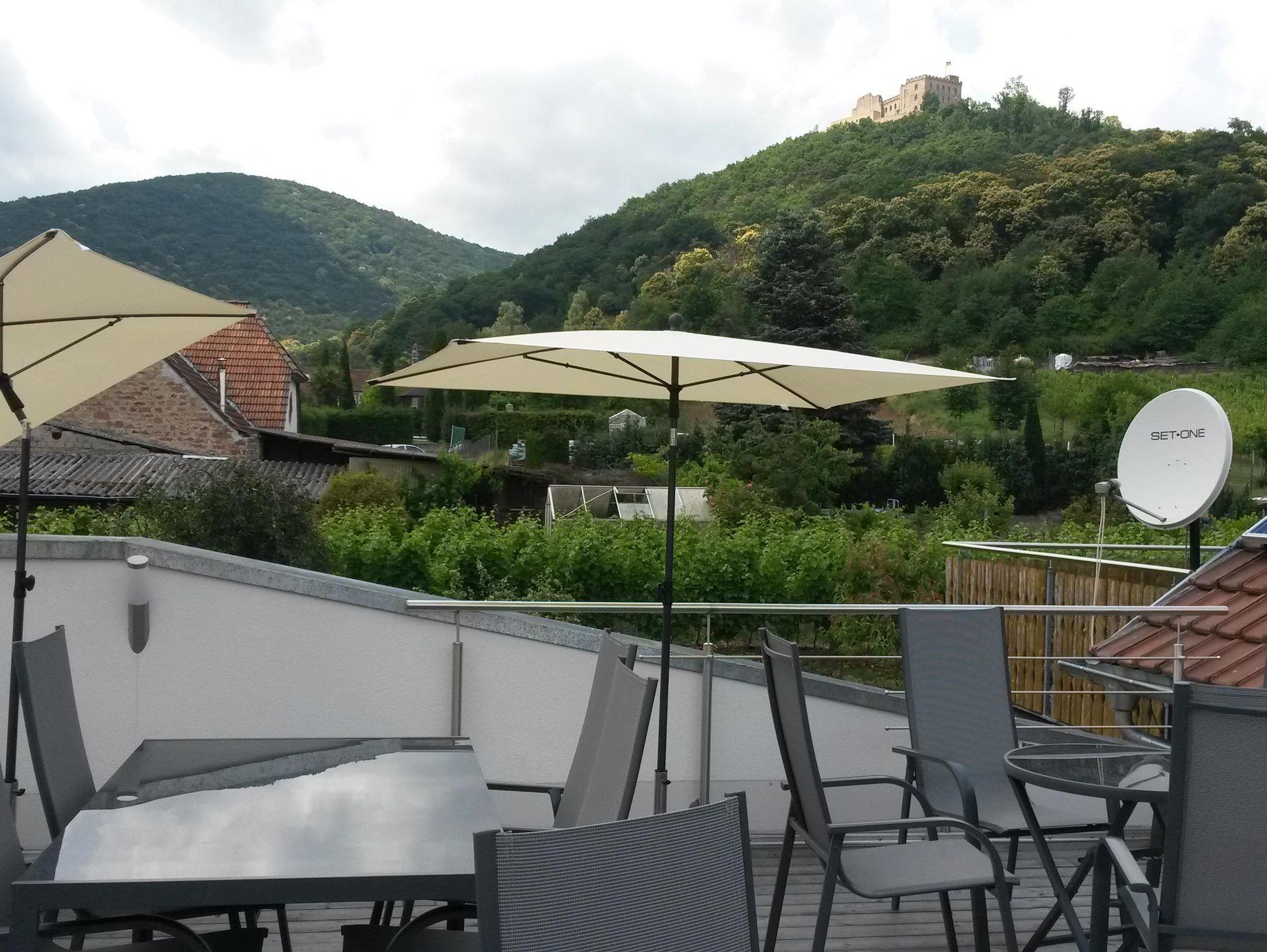 Unsere gemütlichen und lichtdurchfluteten Nichtraucher-Fewo‘s befinden sich am ruhigen Ortsrand in Mitten der Weinberge am Fuße des Schlossberges. Wander- u. Radwege in unmittelbarer Nähe. Schlafzimmer mit Sternenblick; voll ausgestattete Einbauküche im Wohn-Essbereich. Sonnenterrasse mit atemberaubendem Blick zum Schloss lädt ein zum Verweilen. Weinprobe mögl.