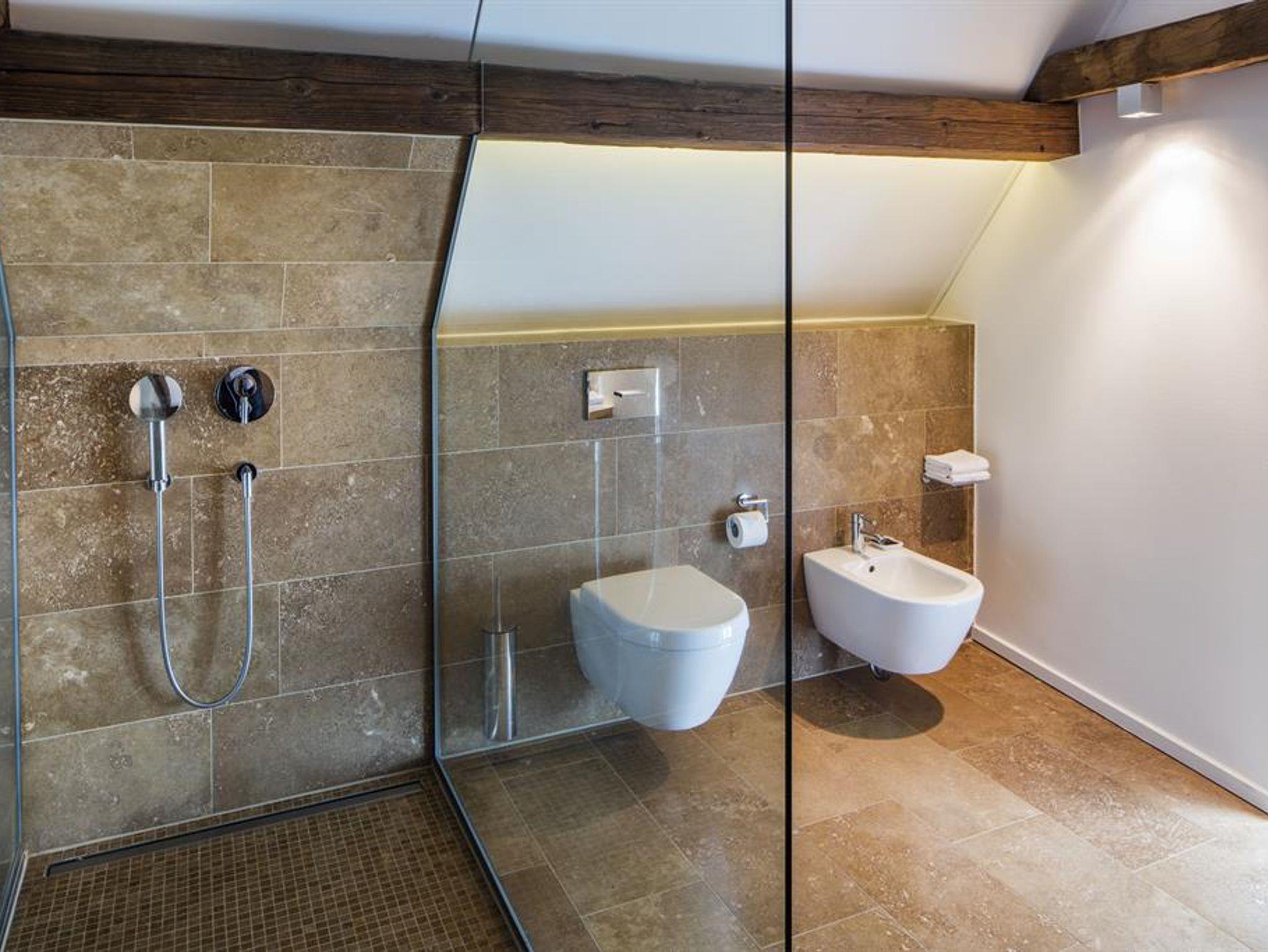 In diesem 55qm großen Studio finden Sie ein großzügiges, vom restlichen Studio getrenntes Bad mit ebenerdiger Dusche, Regenbrause, Bidet, WC und Doppelwaschbecken. Wohn- und Schlafraum sowie die hochwertigst ausgestattete Küche befinden sich in einem offenen Raum. Modernes Möbeldesign wurde hier liebevoll mit dem alten Dachgebälk modernisiert. In unserem herrlichen Innenhof stehen Ihnen Lounge Chairs sowie ein Sitzplatz mit Gartentisch zur Verfügung. Bitte beachten Sie, dass sich diese Wohnung auf Grund der baulichen Gegebenheit nicht 100%-ig verdunkeln läßt. Für Personen mit Gehbehinderung ist diese Wohnung nicht geeignet, da diese nur über einen Treppenaufgang erreicht werden kann.