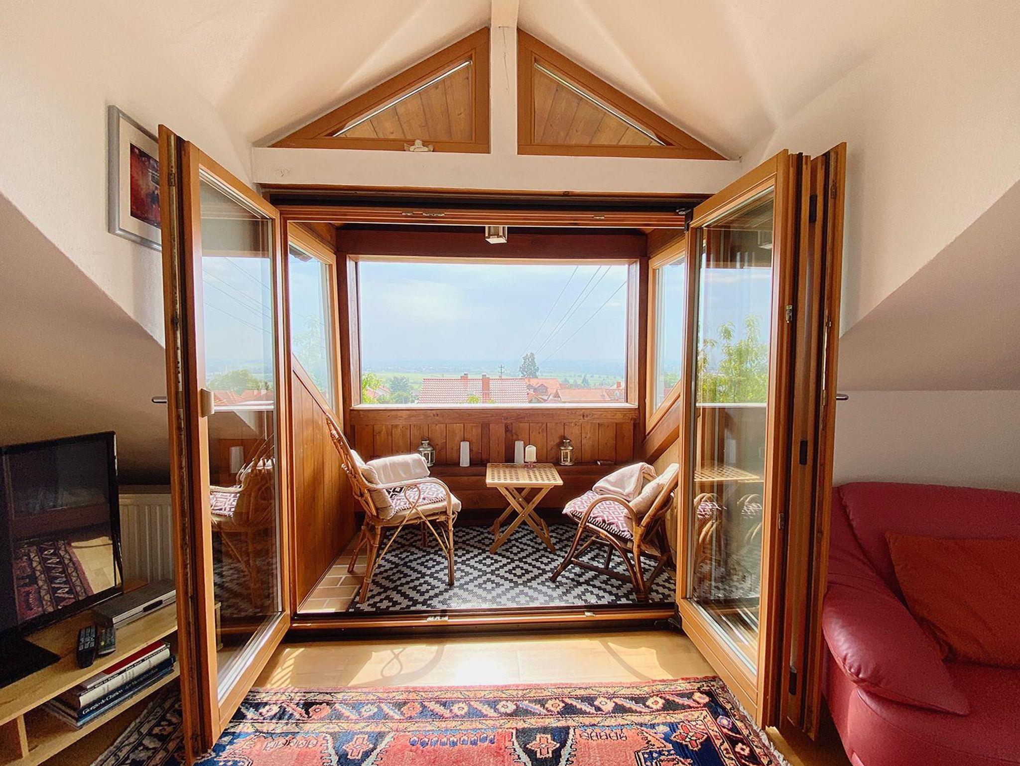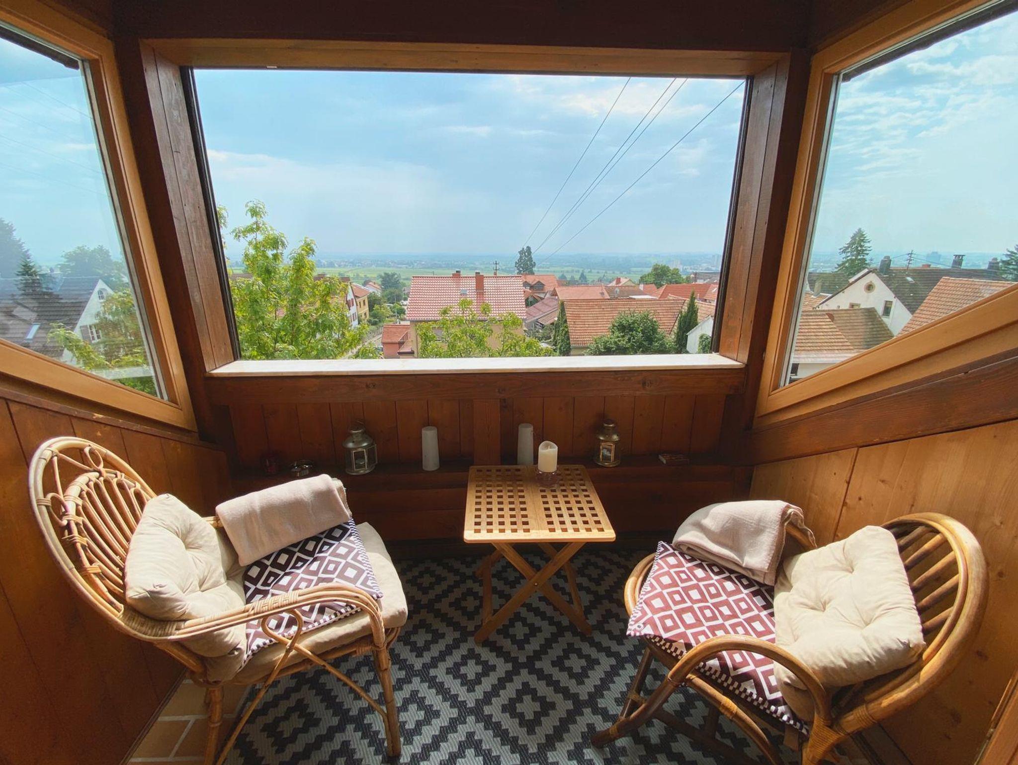 Die mit vier Sternen vom DTV zertifizierte Ferienwohnung Balkon der Pfalz, ca. 60 qm, befindet sich im Weindorf Haardt, einem anerkannten Erholungsort. Der Wohn- Essraum mit komplett ausgestatteter Einbauküche- Geschirrspülmaschine, Kühl- Gefrierkombination, Backofen mit Induktionskochfeld, Kaffeemaschinen (Pad und Filter), Milchaufschäumer, Eierkocher, Toaster, Wasserkocher, etc. - und gemütlicher Sitzecke mit Sofa, Sat-TV, Stereoanlage und Wlan sorgt für Komfort und Gemütlichkeit gleichermaßen. Der überdachte und geschützte Balkon mit den weit zu öffnenden Türen und der grandiosen Fernsicht lädt zum Verweilen und Entspannen ein. Mit dem Blick in einen fulminanten Sonnenaufgang beginnt ein schöner Urlaubstag, mit einem Glas Wein am Abend bei Kerzenschein kann dieser dann ausklingen. Im sep. Schlafzimmer mit Doppelbett - zwei getrennte Matratzen mit verstellbaren Lattenrosten- und großem Kleiderschrank finden Sie erholsamen und ruhigen Schlaf und genügend Stauraum. Ein geräumiges Tageslicht-Badezimmer mit Wanne und Duschmöglichkeit komplettiert die Wohnung. Bademäntel sind auf Wunsch erhältllich, ein Steamer garantiert bei Bedarf knitterfreie Kleidung. Egal, ob Sie die Seele baumeln lassen, den Pfälzer Wald bei Wandertouren erkunden, die Haardter und Neustadter Gastronomie entdecken oder die leckeren Weine in den vielen Weingütern kennenlernen möchten, hier finden Sie, was das Herz und der Gaumen begehren. Das Städtchen Neustadt mit seiner historischen Altstadt lädt zum Verweilen ebenso ein wie die umliegenden Städte, die mit Kunst, Kultur, Geschichte und Moderne gleichermaßen verzaubern. Neustadt ist der ideale Ort zum Verweilen und Entspannen ebenso wie zum Erkunden und Genießen. Die Wanderwege des Pfälzer Waldes beginnen in ca. 200 m Entfernung zur Ferienwohnung. Viele Gäste lieben und genießen ausgiebige Mountainbiketouren oder längere Fahradtouren entlang der Weinstraße. Auch Ausflüge zu den vielen geschichtsträchtigen Orten, in die nahegelegenen Städte, ins benachbarte Elsass oder in einen der nahegelegenen Freizeitparks bieten für jeden Geschmack schöne Erlebnisse und genussvolle Momente.