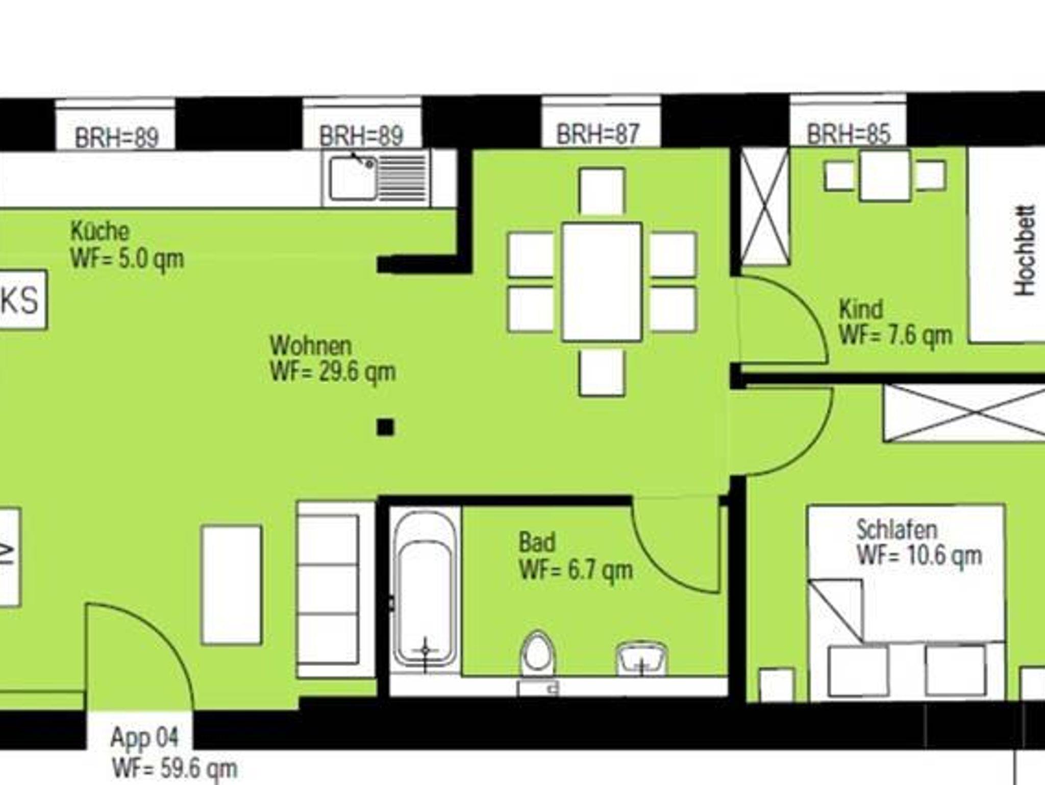 Ferienwohnung Dornfelder 60 m². Im 1. OG. 1 Schlafzimmer für 2 Personen im Doppelbett + 1 Schlafzimmer für 2 Personen (Kinder) im Etagenbett. Badezimmer mit Badewanne.