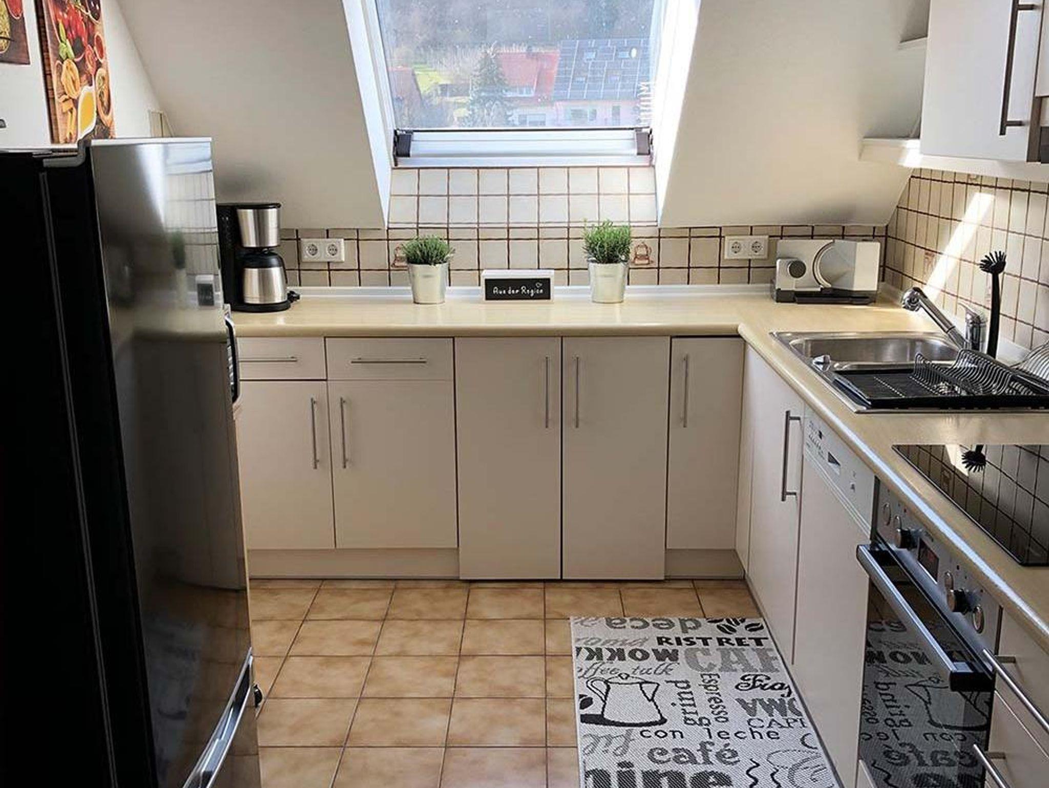 Eine Vollausgestattete Küche mit Herd, Backofen, Spülmaschine, Mikrowelle und eine Kaffeemaschine .Ein grosser moderner Kühlschrank mit Gefrierfach steht auch noch zur verfügung.