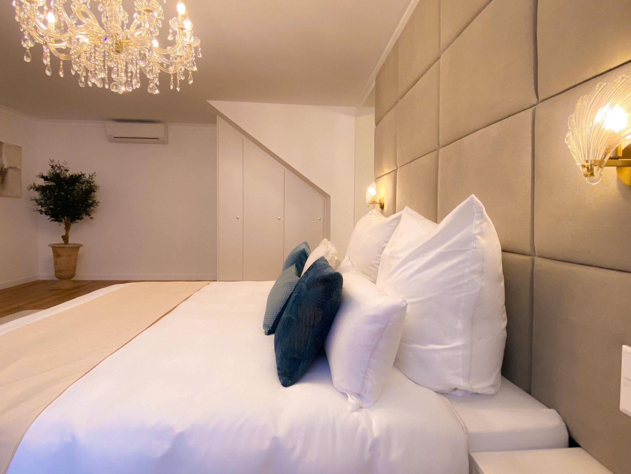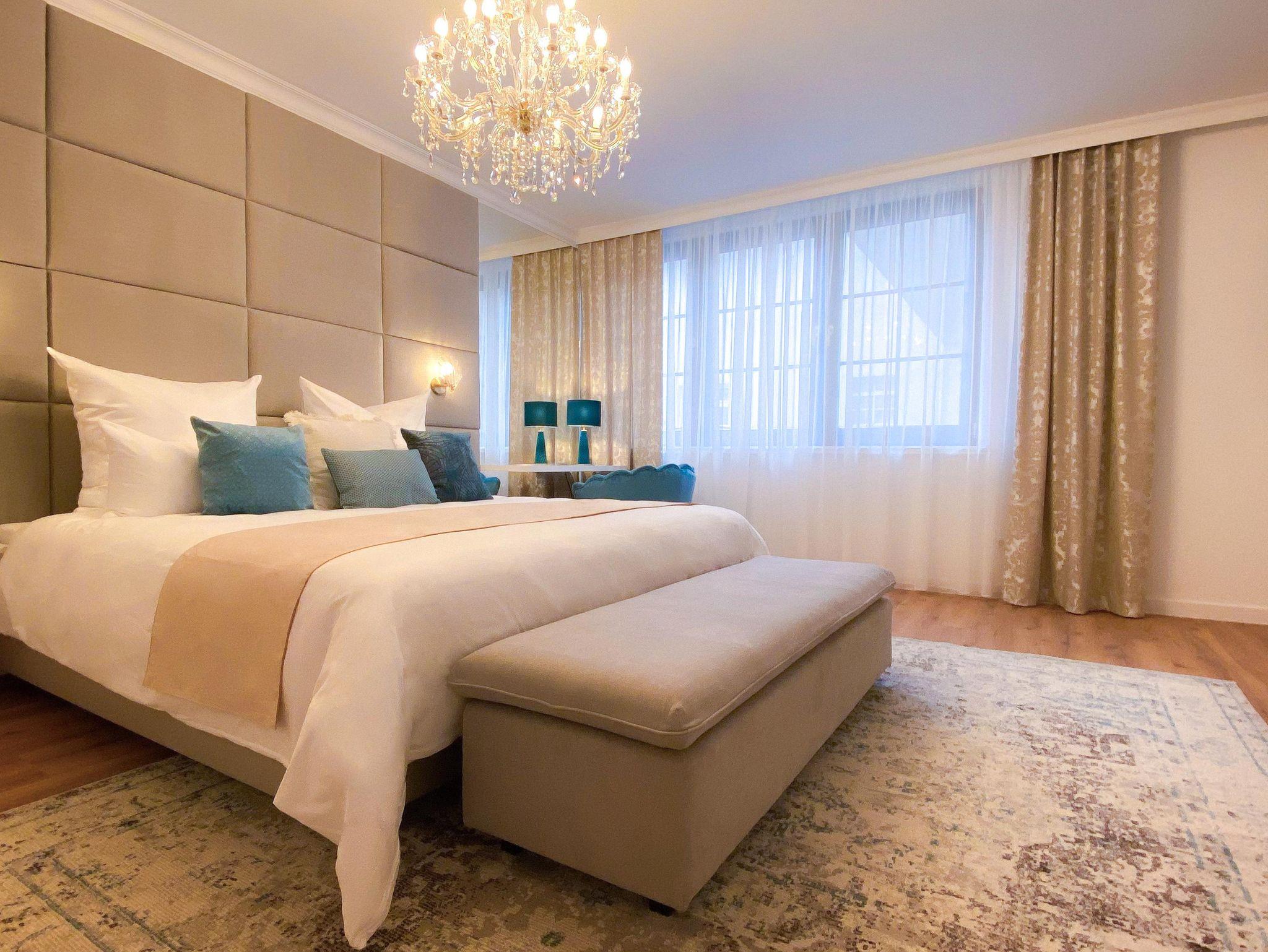 Ideal für alle, die Raum lieben Viel Platz: Das bietet unser rollstuhlgerechtes Grand Deluxe Apartment im Erdgeschoss – Bewegungsfreiraum in jedem liebevoll eingerichteten Zimmer. Das großzügige Schlafzimmer mit gemütlichem Boxspringbett bietet höchsten Komfort, ebenso integriert ist ein kleiner Arbeitsbereich.