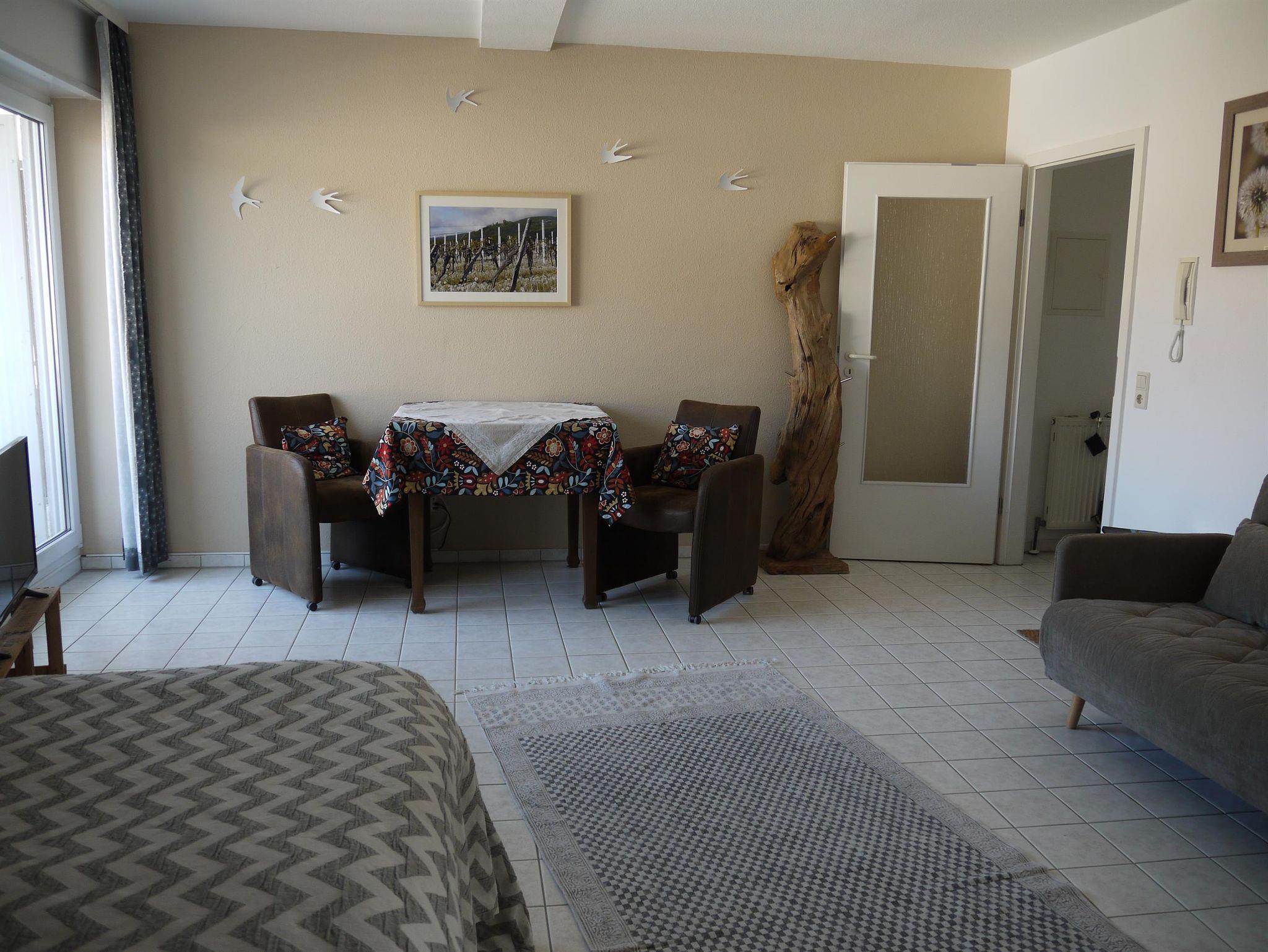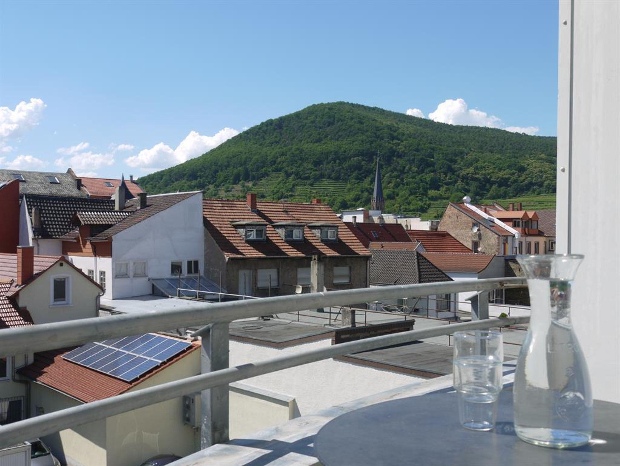 Die Ferienwohnung Ägyptenpfad 2 befindet sich im 3. Stockwerk einer gepflegten Wohnanlage, und ist ein gemütliches und helles 1-Zimmer Appartement von 38 qm. Sie ist sehr zentral gelegen und doch ruhig. Der Neustadter Hauptbahnhof mit den Bushaltestellen, liegt nur maximal 5 Minuten zu Fuß entfernt. Ebenso einige Wanderwege zum Pfälzerwald und Radwege in die Region. In der Wohnung befindet sich ein abgeschlossenes Duschbad mit Tageslicht, hier liegen frische Handtücher für die Gäste bereit. Es gibt eine moderne Kochküche in der Kochnische, ausgestattet mit Mikrowelle, Kühlschrank und Gefrierfach, Wasserkocher, Kaffeemaschine und Toaster, mit der Aussicht auf Neustadt´s gute Stube: den Saalbau.Ein Handtuch, Geschirrhandtuch und Spüllappen liegen bereit. Im Wohnbereich eröffnet ein großes Fenster den Blick auf den Balkon, über die Dächer und Kirchtürme der Altstadt, bis zu den nahen Bergen des Pfälzer Waldes. Hier können Sie sitzen, die Mauersegler beobachten, die Glocken der Stiftskirche läuten hören, und am Abend den Sonnenuntergang betrachten. Den Gästen steht ein bequemes Boxspringbett (140 x200) frisch bezogen zur Verfügung, ebenso ein geräumiger Kleiderschrank mit großem Spiegel, ein extravaganter Garderobenständer und ein praktisches Regal zur Ablage Ihrer Utensilien. Entspannt sitzen Sie auf gemütlichen Sesseln am Tisch zur Lektüre, Fernsehen oder einem Glas Pfälzer Wein. Zur Unterhaltung, steht unseren Gästen auch ein Fernseher mit Flachbildschirm und Fernbedienung, sowie kostenloses W-lan, zur Verfügung. In der Tiefgarage können Sie für insgesamt 10 Euro einen Stellplatz dazubuchen und ihr Fahrrad, kostenlos und sicher, unterstellen.