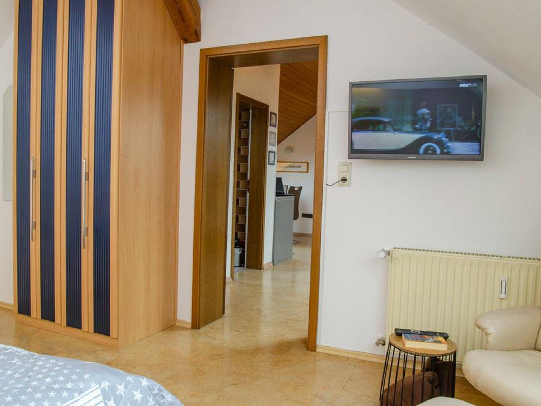 Ausstattung: Wohnzimmer mit Ecksofa, Flachbildschirm und Stereoanlage; Schlafzimmer mit Doppelbett 2 x 2 m, elektrischen Lattenrosten und Flachbildschirm an der Wand. Küche mit Backofen, Mikrowelle, Wasserkocher usw.. Bad mit Dusche, Bademäntel auf Wunsch. Kostenloser Parkplatz vorm Haus, Garage zubuchbar. Lokale und Weinstuben in der Nähe.