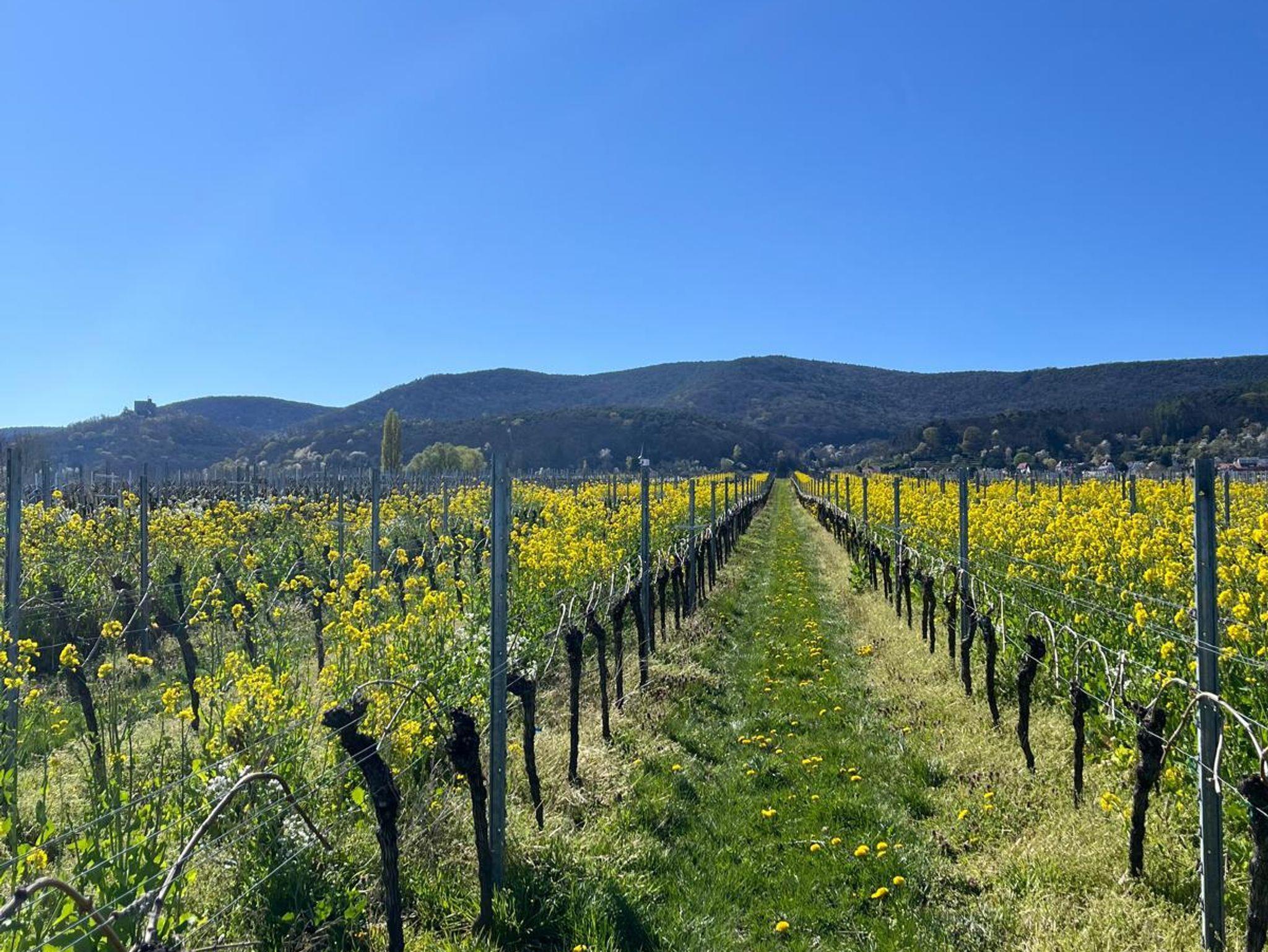 Direkt unterhalb des Hambacher Schlosses, das majestätisch über den Weinbergen thront – können Sie ideal in den Tag starten oder den Abend bei einem Glas Wein ausklingen lassen.