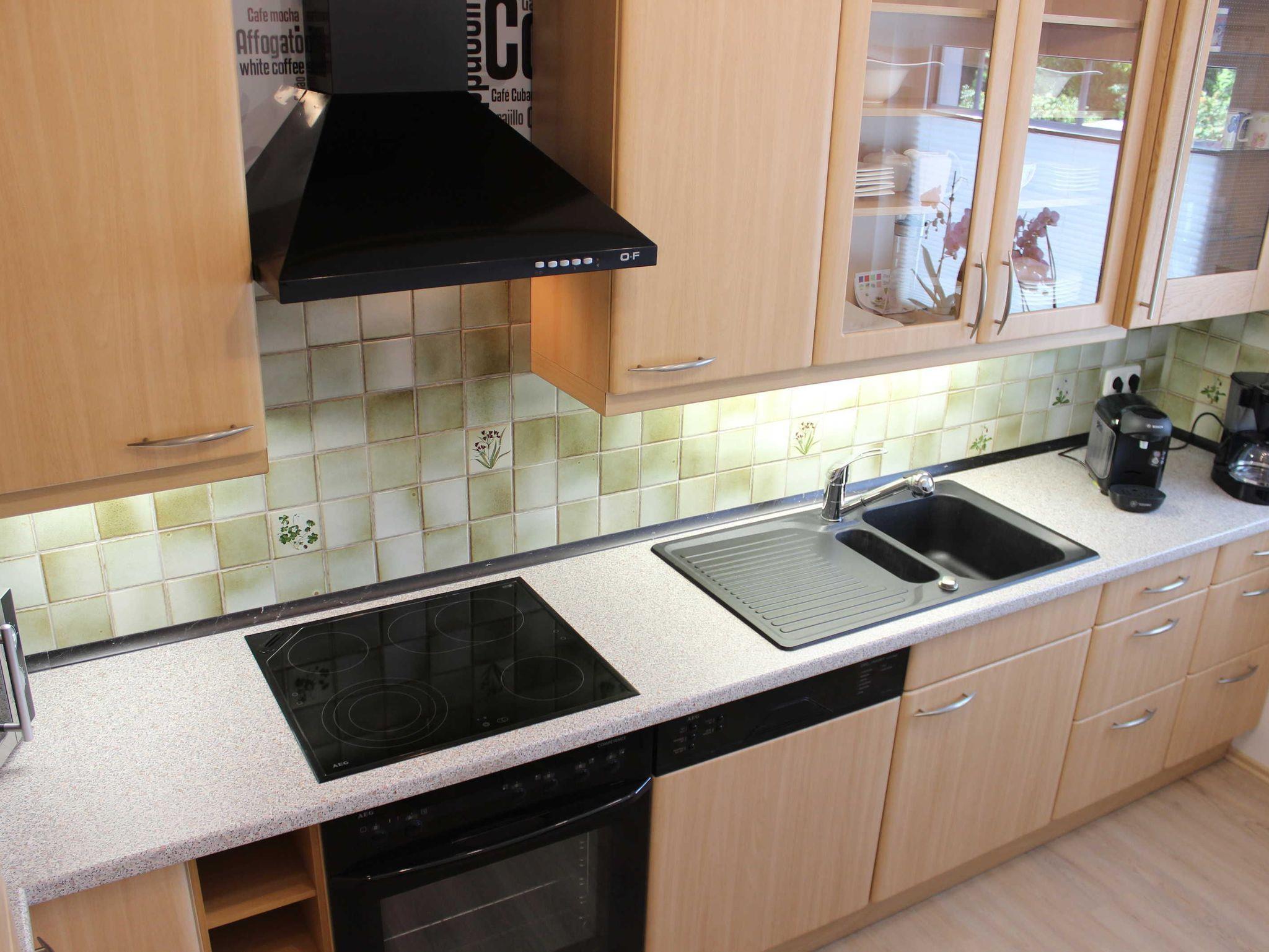 Der Umwelt zuliebe wird der Gefrierschrank vorab nur eingeschaltet, wenn der Bedarf vor Anreise angeben wird. Vor Ort ist ein Anschalten jederzeit möglich. Der Herd mit Ceranfeld und Backofen lädt zum Kochen und Backen ein. Kaffeemaschine, Tassimo-Automat , Mikrowelle und Kühlschrank sind vorhanden.