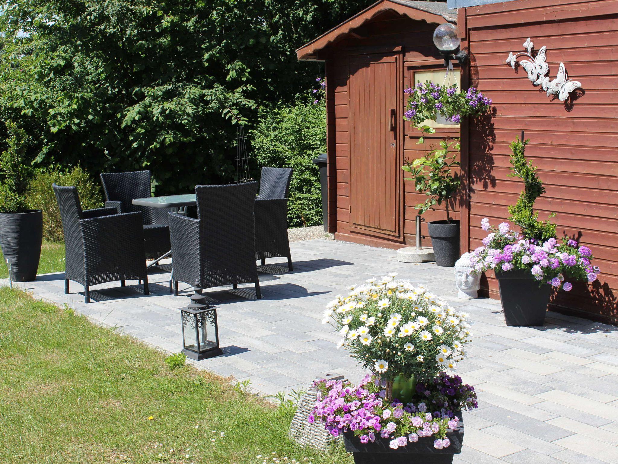 Im Garten bzw. im Gartenhaus befinden sich Gartenmöbel.