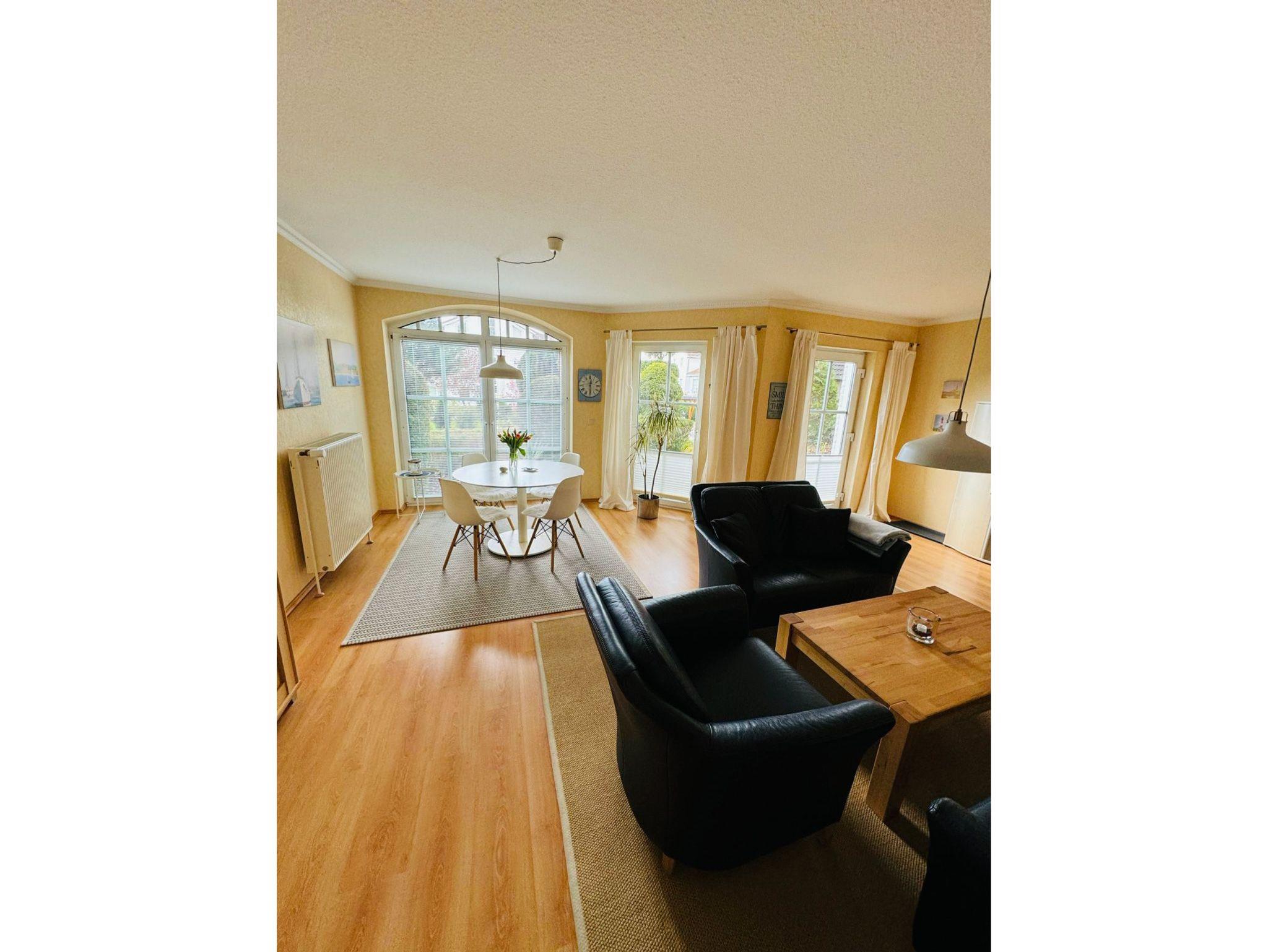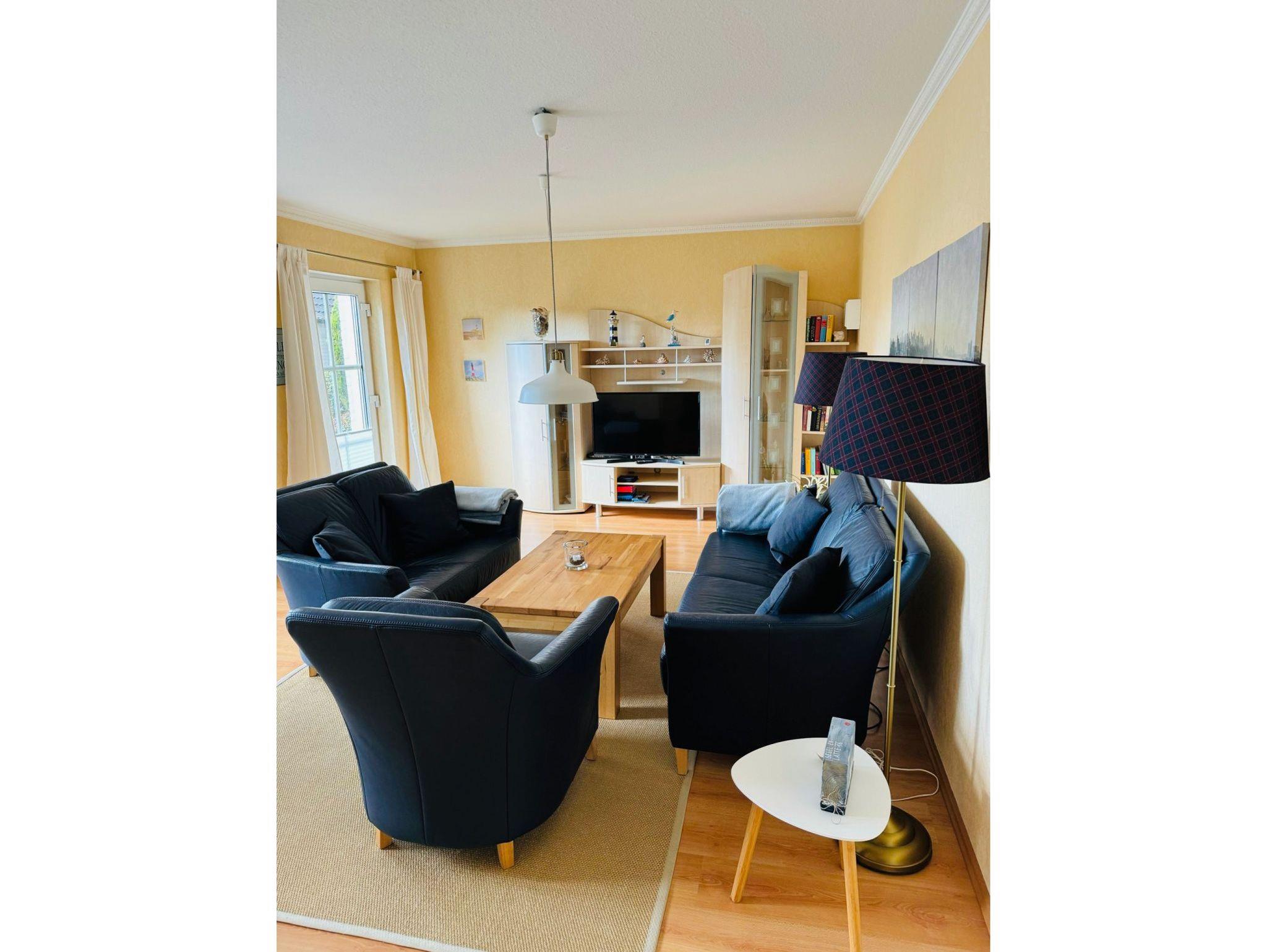 Die Ferienwohnung ist mit allen notwendigen Annehmlichkeiten ausgestattet, einschließlich einer voll ausgestatteten Küche mit Kühlschrank, Backofen, Kaffeemaschine, Geschirrspüler, Mikrowelle und Geschirr sowie einem Wohnzimmer mit TV, bequemen Sofas und einem Essbereich. Die zwei Schlafzimmer bieten ausreichend Platz und Komfort für eine erholsame Nachtruhe. Ein Schlafzimmer verfügt über ein Doppelbett (180 x 200 cm), TV und das zweite Schlafzimmer (Durchgangszimmer) verfügt über zwei Einzelbetten (je 90 x 200 cm), TV. Das Badezimmer ist mit einer Dusche, WC ausgestattet. Ein Fön, Seife, Hygieneartikel stehen Ihnen zur Verfügung, ebenso wie Handtücher und Bettwäsche. WLAN kann kostenfrei genutzt werden. Zur Ferienwohnung gehört eine eigene Terrasse, die mit Gartenmöbeln ausgestattet ist und wunderschönem Garten, der ideal zum Entspannen im Freien einlädt. Im Garten laden zwei Gartenstühle und eine Feuerstelle zum verweilen in den Abendstunden ein. Genießen Sie ein Frühstück auf der Terrasse oder bereiten Sie ein Abendessen zu und essen Sie draußen, während Sie den schönen Blick genießen können. Parkmöglichkeiten bestehen vor dem Haus. Der Wohnungseingang ist durch einen separaten Weg zu erreichen. Fahrräder können bei einem nahegelegenen Anbieter geliehen werden. Es gibt Fahrradstellplätze an der Ferienwohnung.