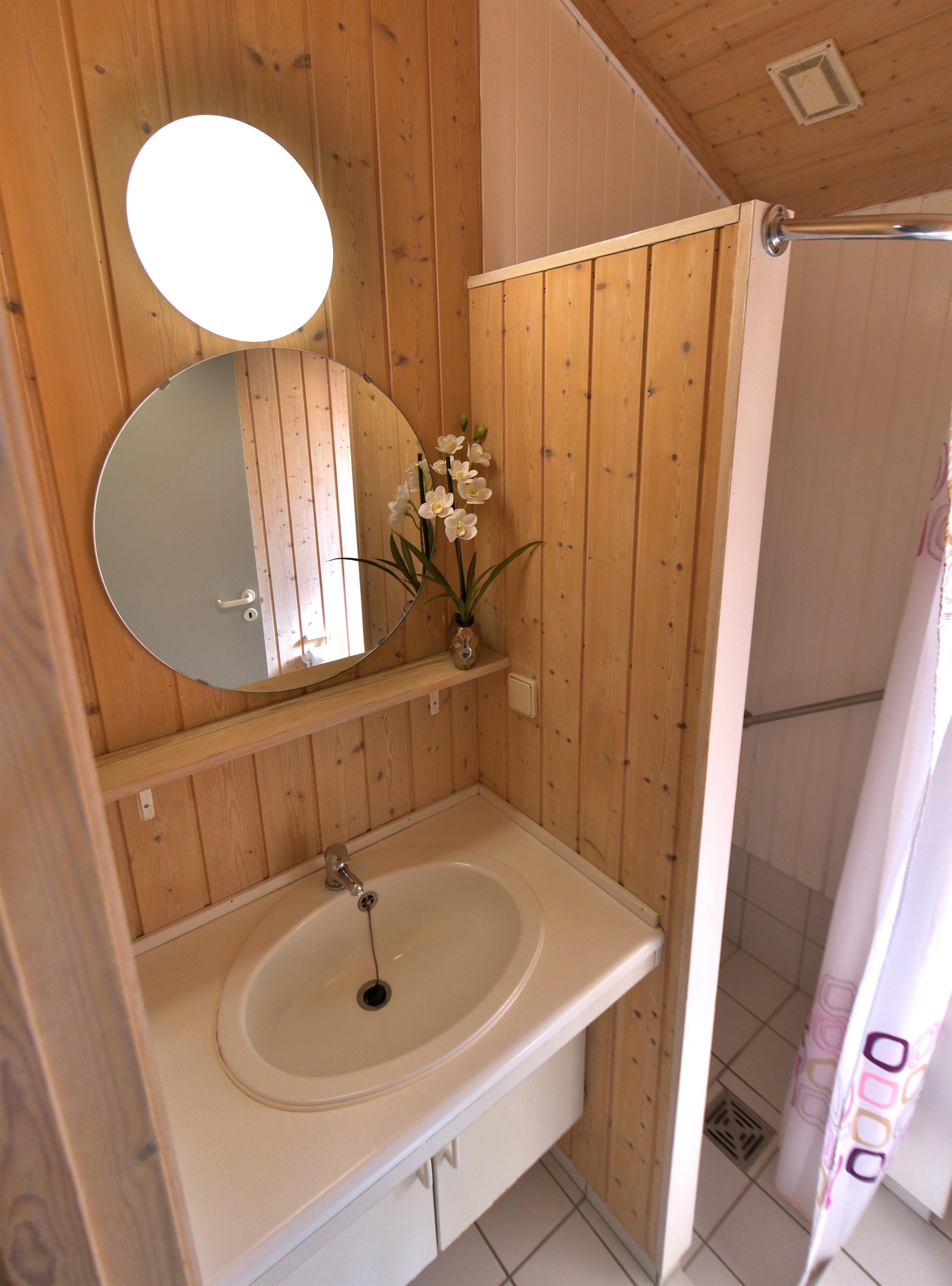 Das Haus verfügt über ein Schlafzimmer mit Doppelbett und zwei Schlafzimmer mit je zwei Einzelbetten. Alle Betten haben eine Länge von 200 cm. Im Bad gibt es einen Waschplatz sowie Dusche und WC.
