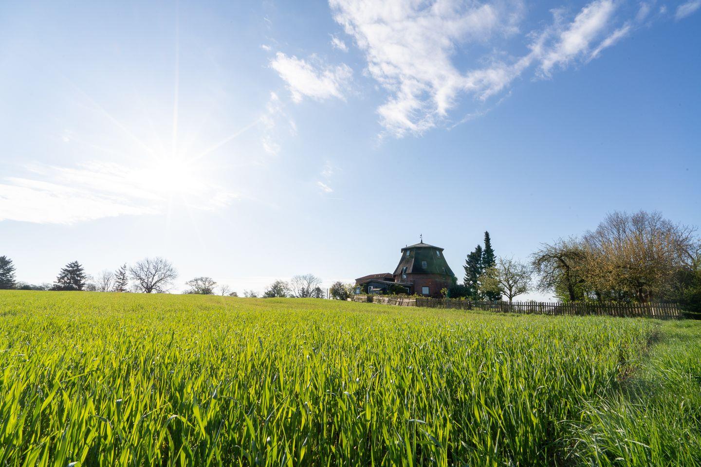 Diese Ferienwohnung befindet sich im zurückgelegten Anbau der Lübschen Mühle in der Nähe von Neustadt in Holstein. Auf zwei Ebenen wurde über ca. 65 qm ein Erholungsort in ländlicher Idylle für bis zu 4 Personen geschaffen. Mit dem Fahrrad sind Sie in nur 15 Minuten am Meer. Auf der unteren Ebene befindet sich der abgesetzte Wohnbereich mit Essecke und Blick auf den Flachbild-TV. Vom Esstisch aus haben Sie eine herrliche Sicht über die Felder. Die bodennahen Fenster sorgen stets für einen guten Ausblick in die Ruhe und Weite der Felder drumherum. Die offene Küchenecke befindet sich direkt an der Terrassentür. Sie ist mit allem Notwendigen wie beispielsweise Kühlschrank, 4-Flammen-Herd, Geschirrspüler und ausreichend Geschirr ausgestattet, um sich selbst zu versorgen.