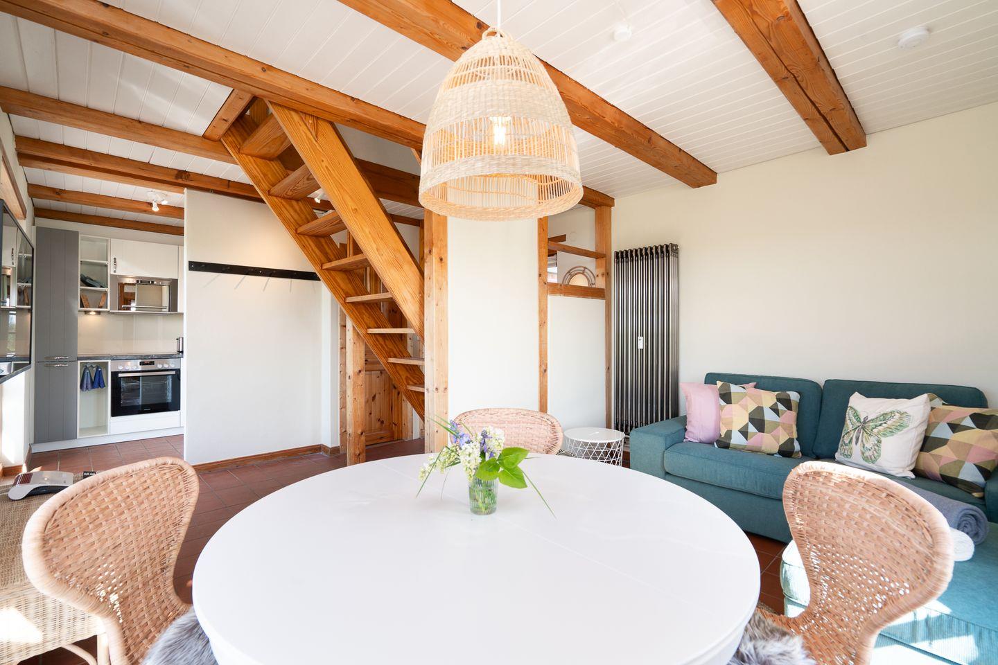 Die Ferienwohnung in der Lübschen Mühle bei Neustadt in Holstein erstreckt sich über zwei Ebenen und bietet auf ca. 65 m² Platz für bis zu 4 Personen.
