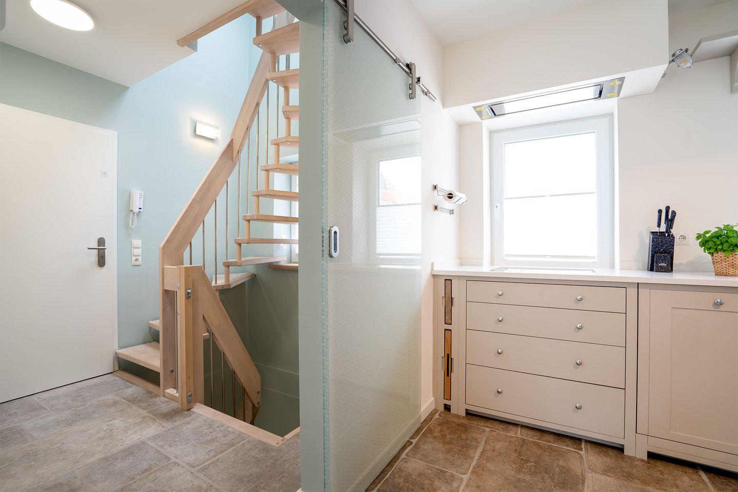 Diese stilvoll eingerichtete 3-Zimmer-Wohnung erstreckt sich über drei Etagen und bietet Ihnen alles, was Sie für einen komfortablen und unvergesslichen Aufenthalt brauchen. Schon beim Betreten empfängt Sie ein kleiner Vorflur, der Sie in den großzügigen Wohn- und Essbereich führt.