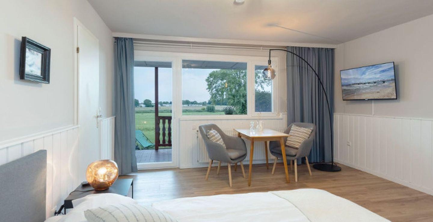 Das Strandperle-Apartment liegt im Erdgeschoss und bietet auf 37?m² eine gemütliche Rückzugsoase für 2 Personen. Über einen Wintergarten betritt man das liebevoll eingerichtete Apartment mit offener Küchenzeile und Esstisch. Der Wohn-/Schlafbereich ist mit Doppelbett (160×200?cm), Flachbild-TV und Kleiderschrank ausgestattet. Das innenliegende Badezimmer verfügt über Dusche und WC. Haustiere (1 Hund) sind willkommen. WLAN, Parkplatz, Zugang zur Gemeinschaftssauna, große Gartenfläche mit Feuerstelle und Bollerwagen runden das Angebot ab. Nur wenige Gehminuten (ca. 600?m) zum Strand, ideal für Paare, die Erholung in familiärer Atmosphäre suchen.