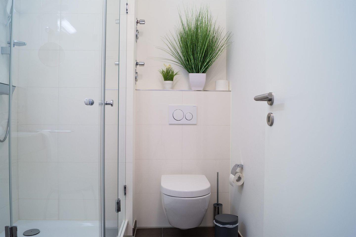 Das geräumige offene Wohnzimmer mit Essbereich und offener, voll ausgestatteter Küche bildet den Mittelpunkt der Wohnung. Im Flur und in der Küche finden Sie ausreichend Stauraum durch einen Einbauschrank und eine Abstellkammer. Zwei Schlafzimmer für je zwei Personen sowie zwei Bäder (eines mit Dusche und eines mit Badewanne) garantieren maximalen Komfort.