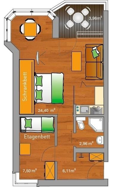 Verbringen Sie Ihre schönsten Tage des Jahres in unserem 3-Sterne-Appartement. Sie werden sich wohlfühlen in dem in warmen Farben gehaltenen Appartement. Ein Flachbild-TV und eine komplett ausgestattete Küche sorgen dafür, dass Sie nicht auf gewohnte Annehmlichkeiten verzichten müssen.