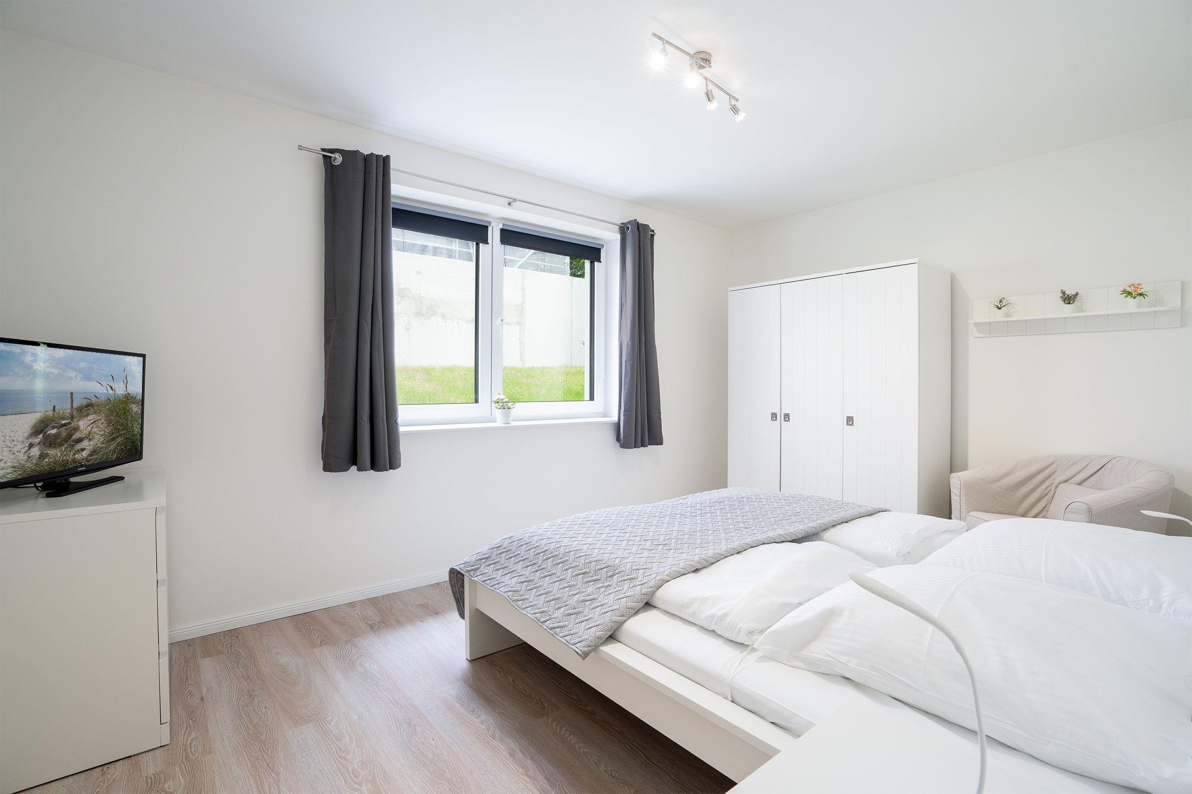 Schlafzimmer 4: 1 Doppelbett (2x 90x200 cm), Kleiderschrank, TV, Verdunkelung (Rollo und Gardinen), Platz für Babybett